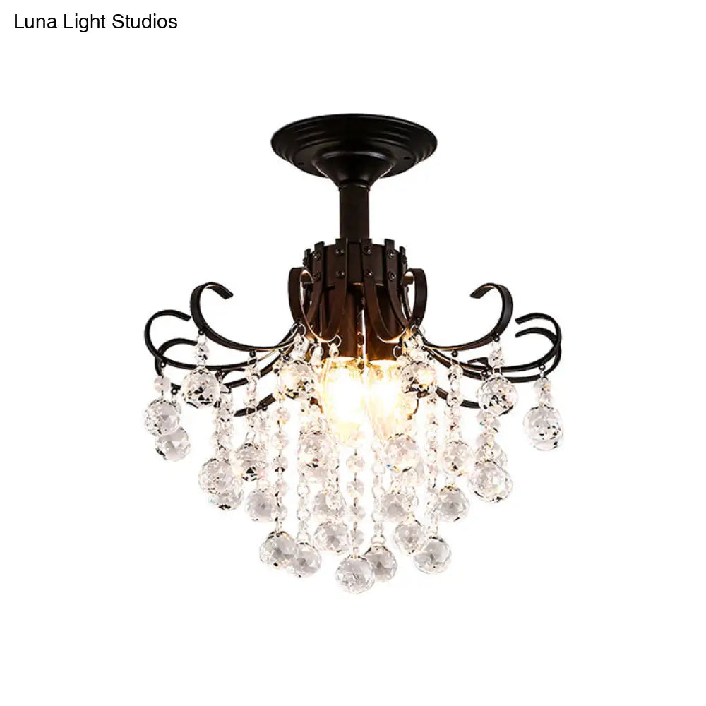 DecorBites™ Lámpara de techo semiempotrada moderna con bola de cristal negra y 3 cabezales para dormitorio