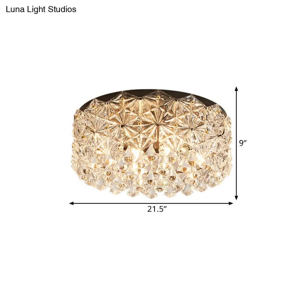Lámpara de techo moderna DecorBites™ con forma de tambor negro y cristales hexagonales - Montaje empotrado, 45,7 cm/54,6 cm de ancho