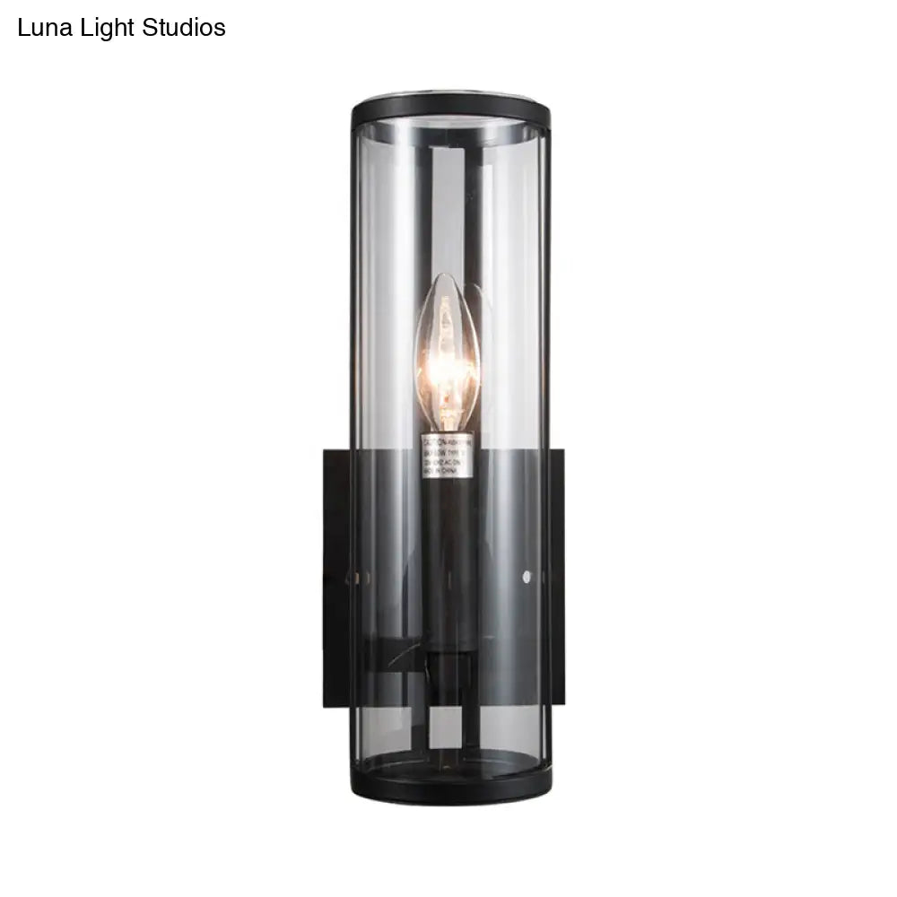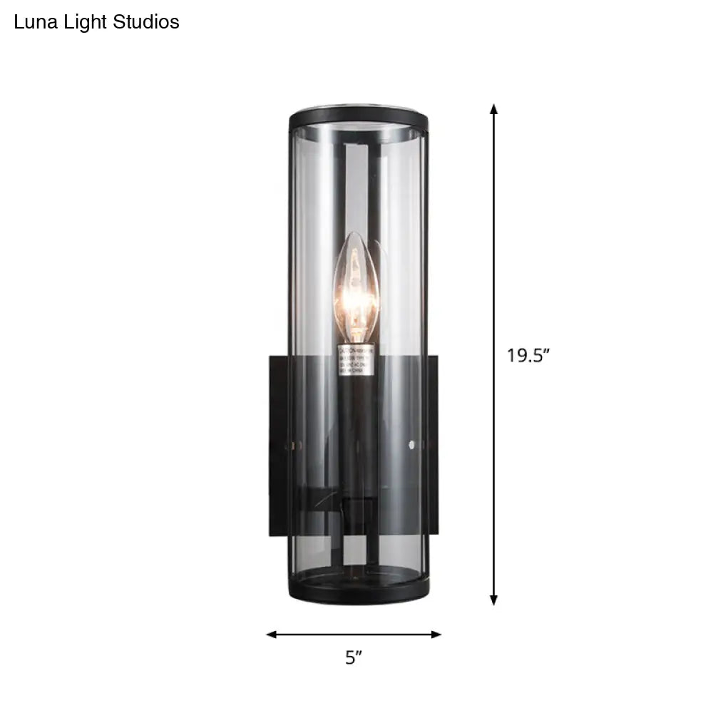 Aplique de pared moderno negro DecorBites™ con bombilla cilíndrica de cristal transparente – Lámpara de pared
