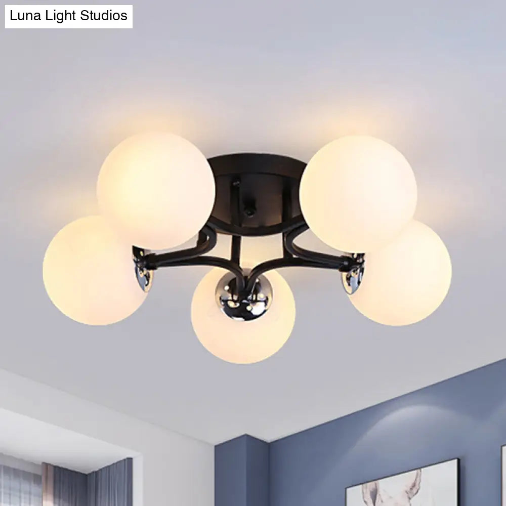 DecorBites™ Lámpara de techo semiempotrada nórdica de metal con pantalla de cristal esférica - 3/5/9 luces para sala de estar