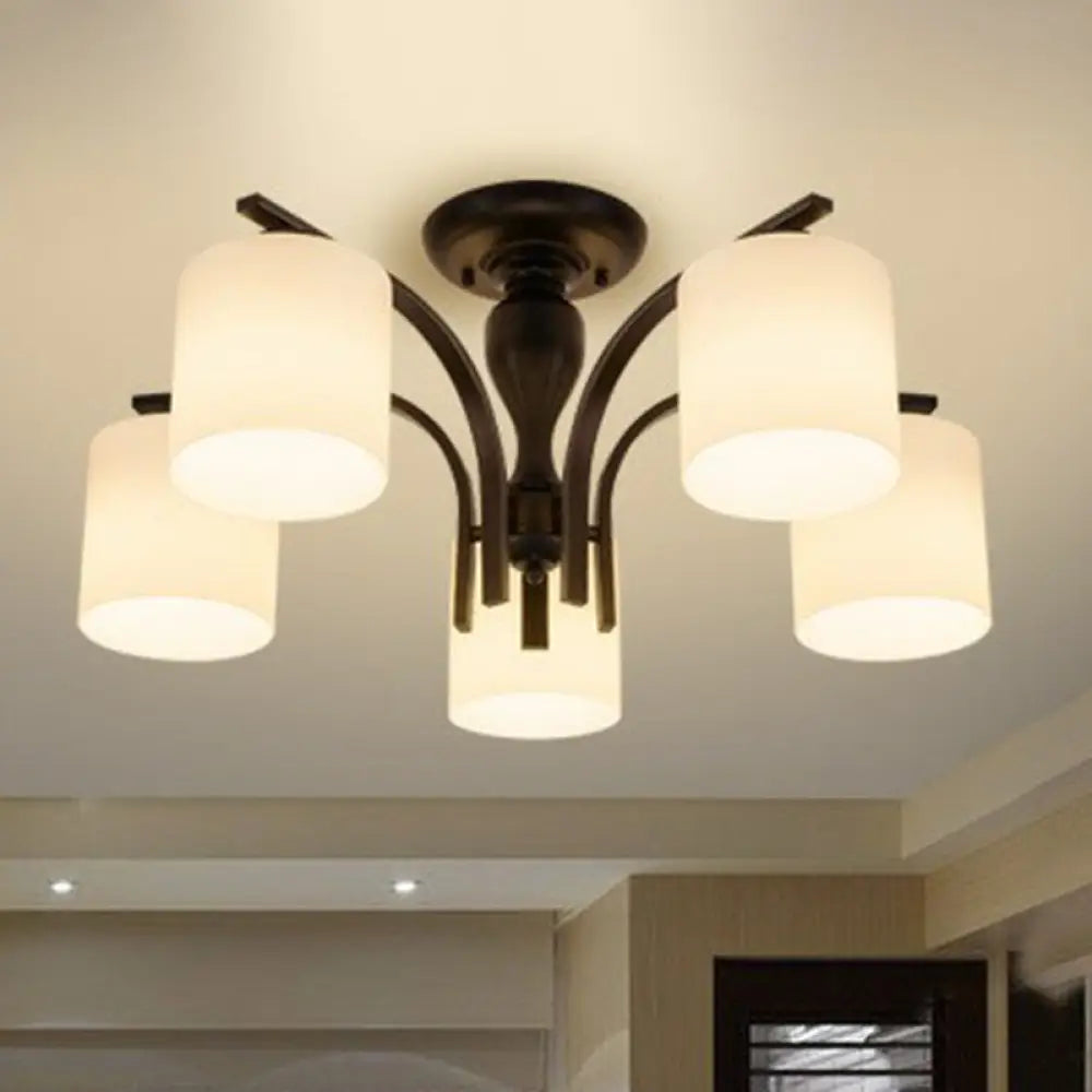 Lámpara de techo semiempotrada DecorBites™ de cristal opalino - Diseño cilíndrico clásico en elegante negro