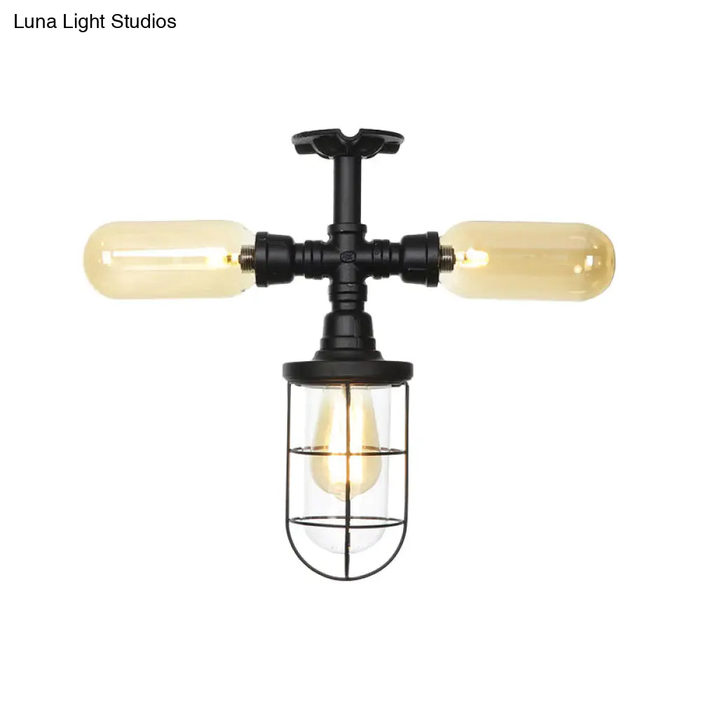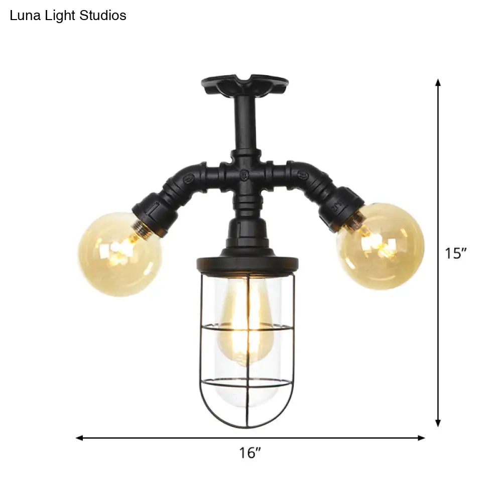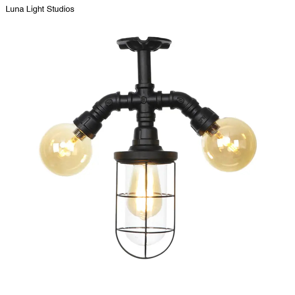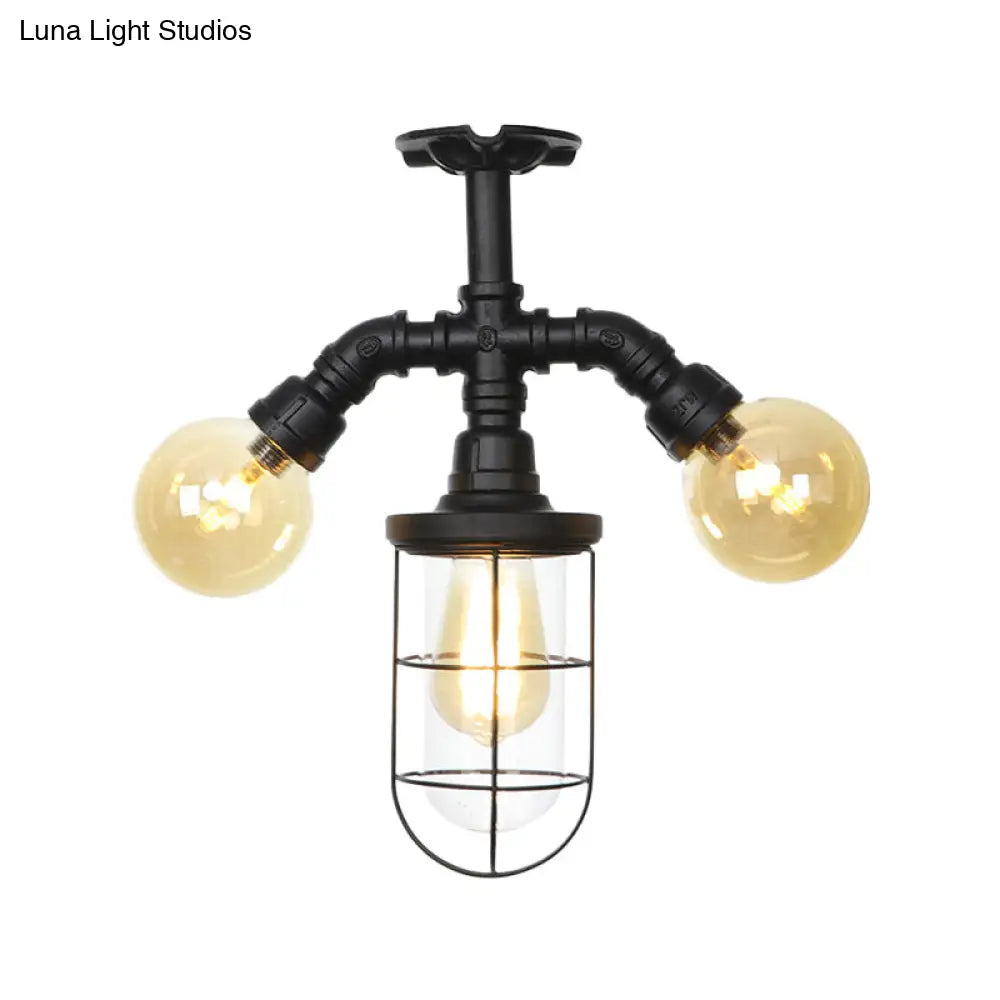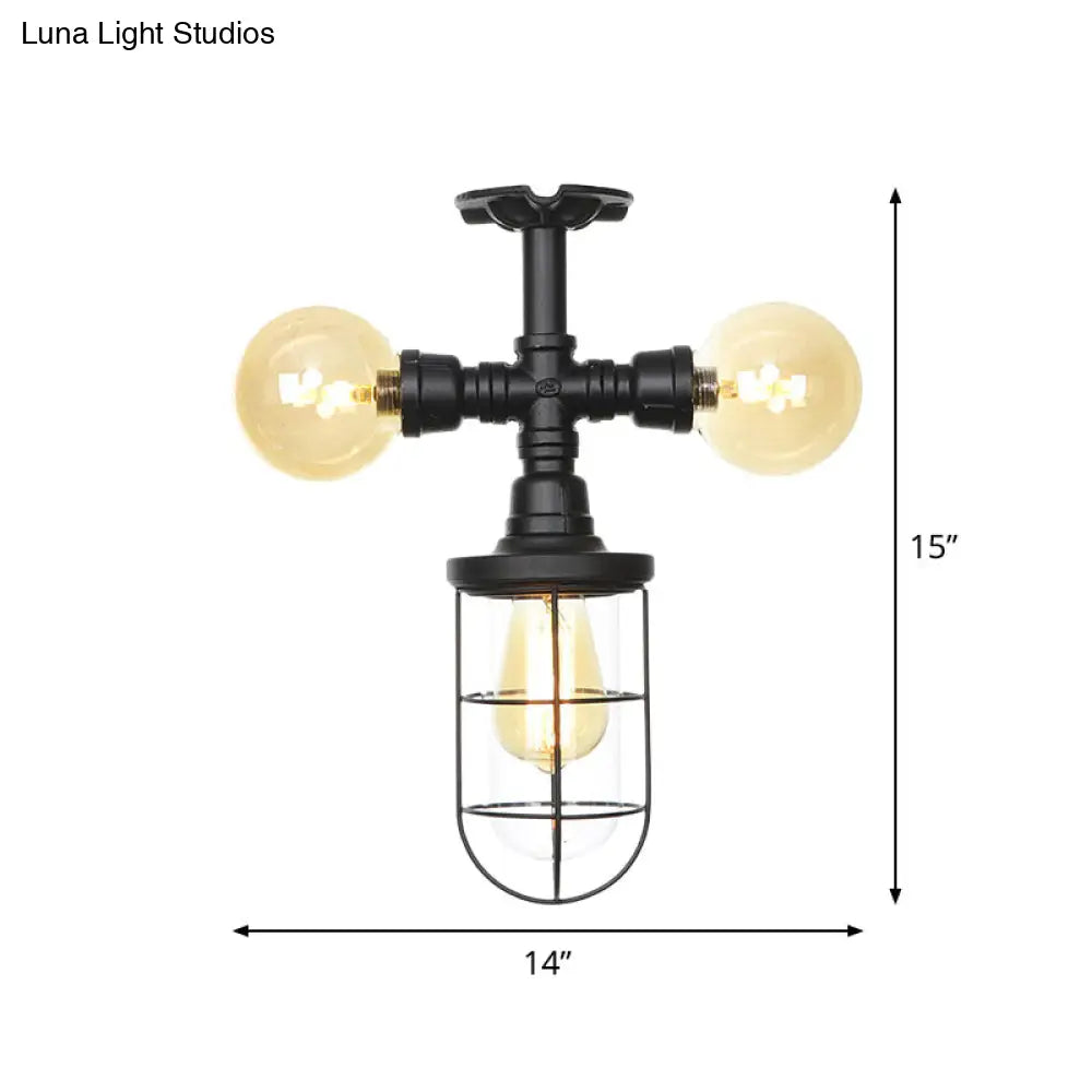 DecorBites™ DecorBites™ Elegante aplique de pared semiempotrado de 3 cabezales para vestíbulo en color negro con bola/cápsula de cristal transparente y jaula