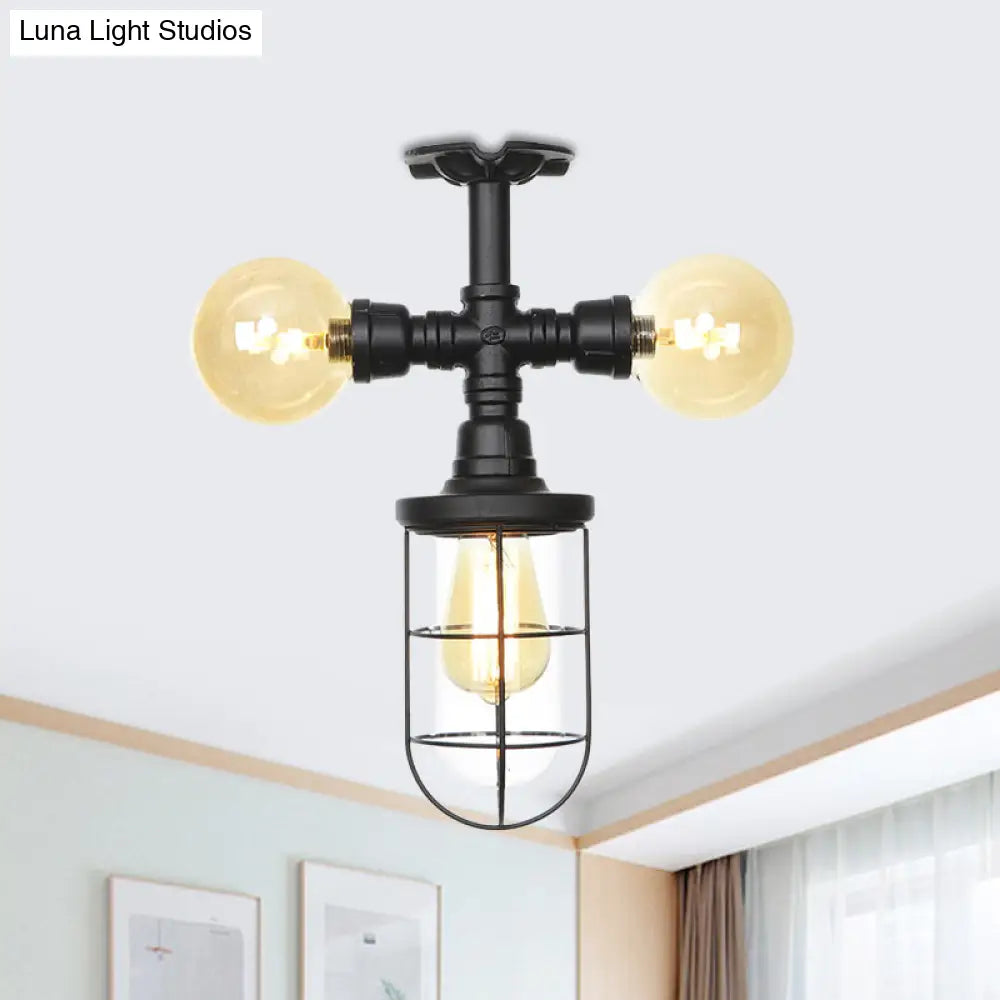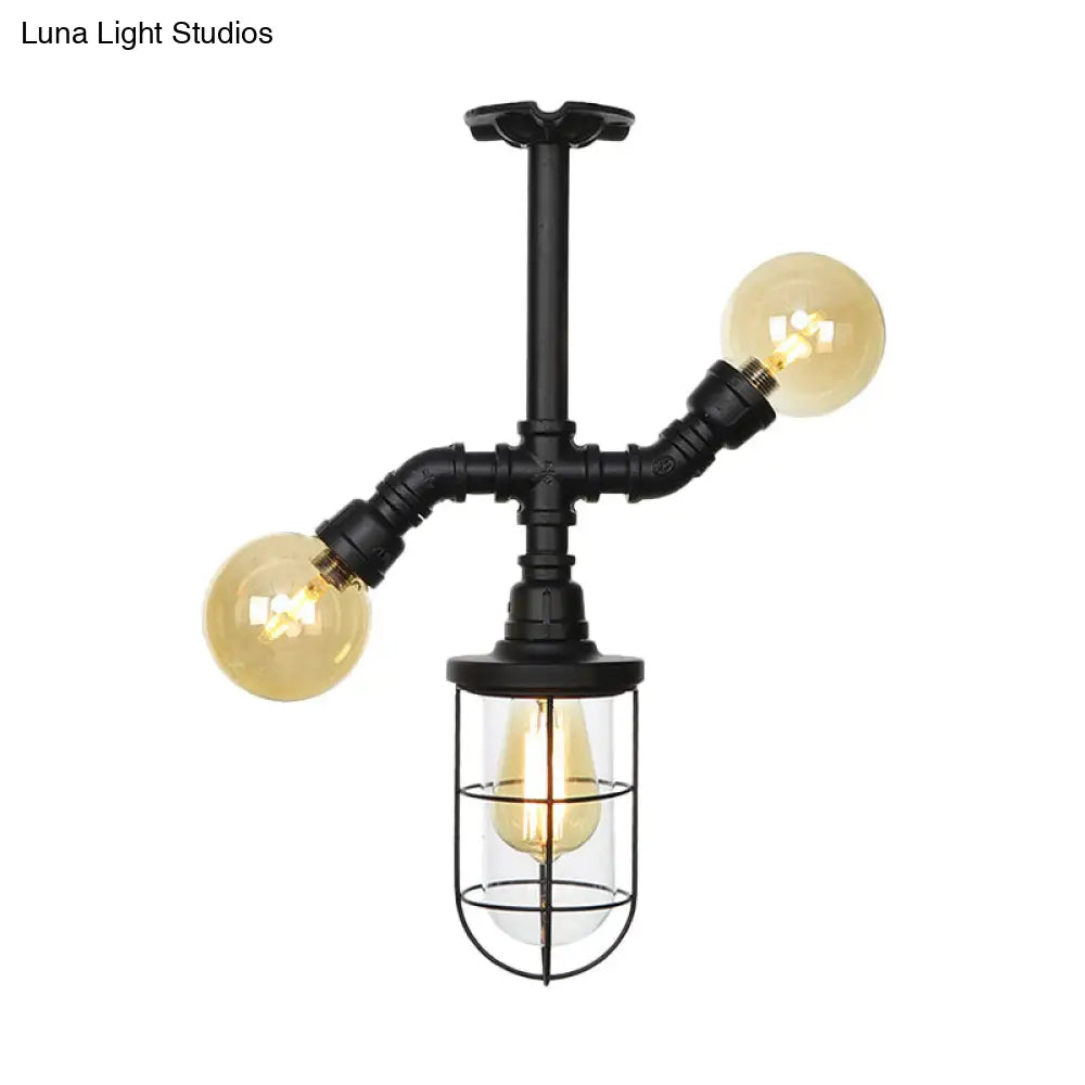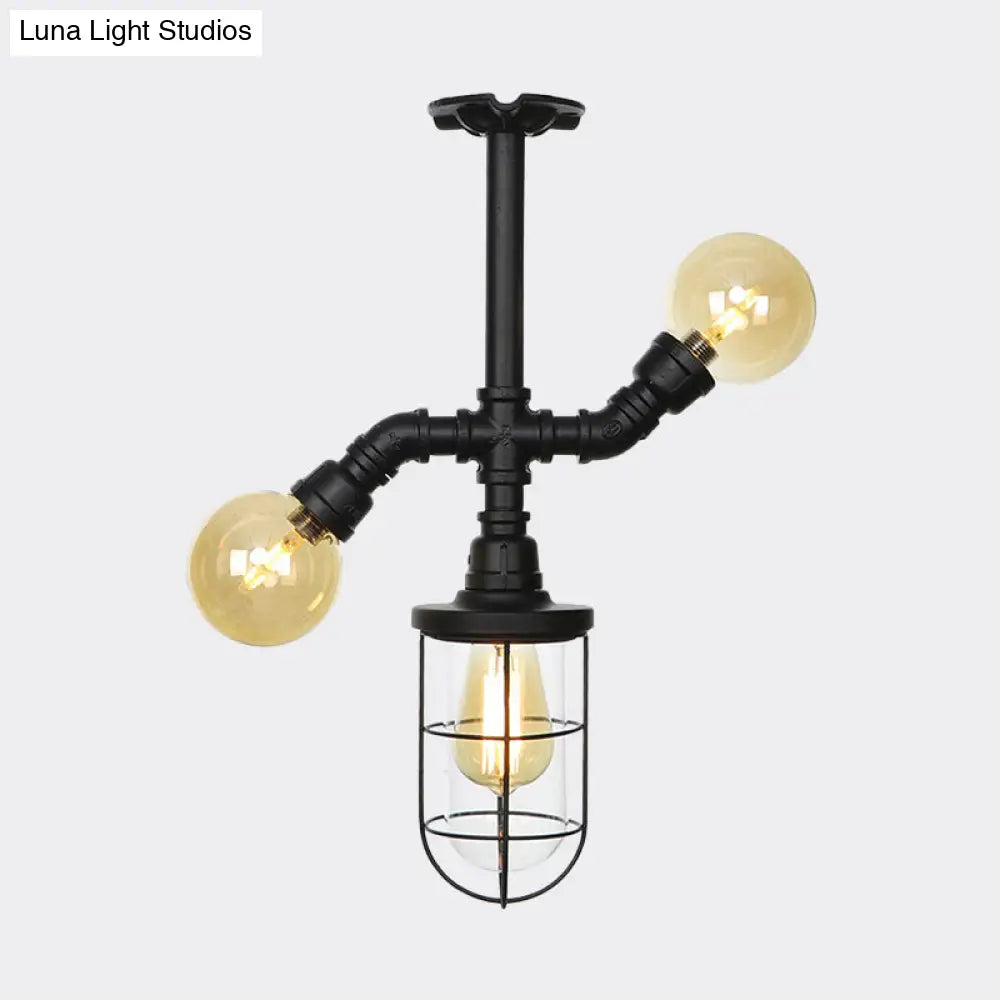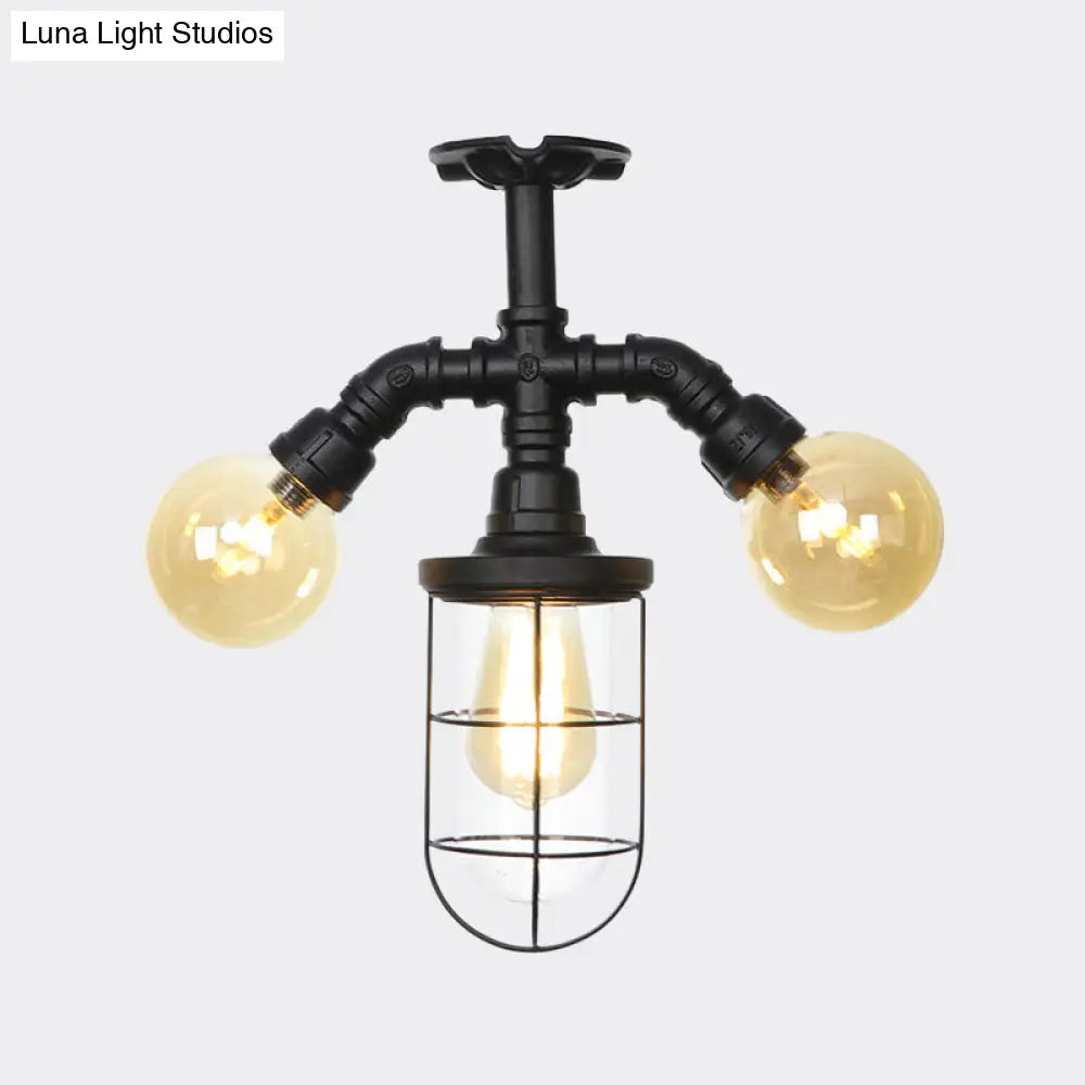 DecorBites™ DecorBites™ Elegante aplique de pared semiempotrado de 3 cabezales para vestíbulo en color negro con bola/cápsula de cristal transparente y jaula