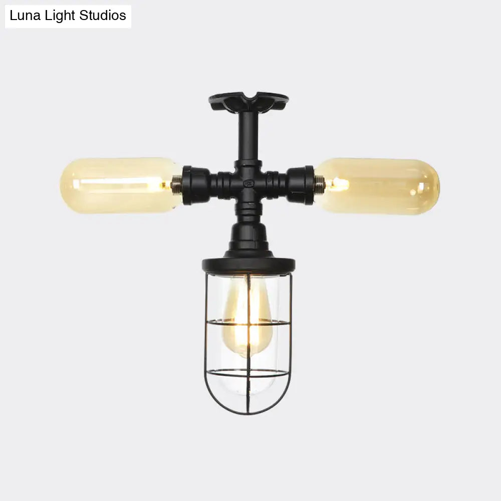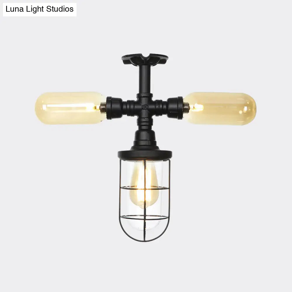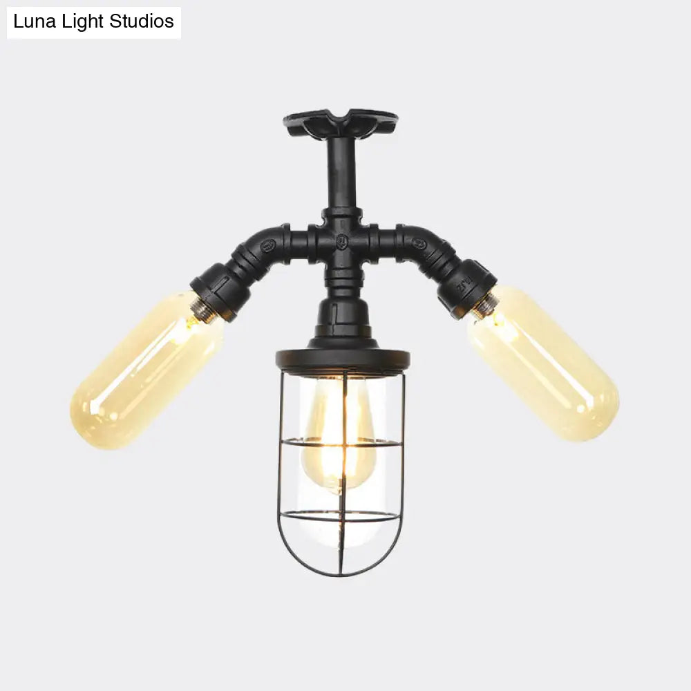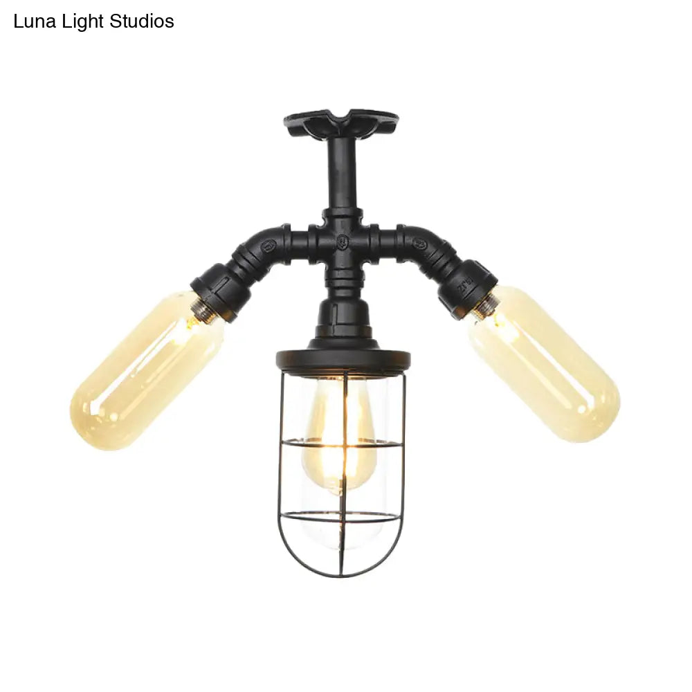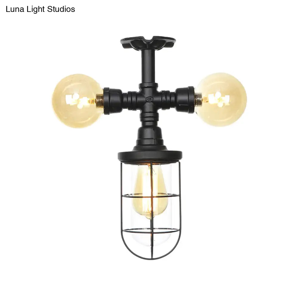 DecorBites™ DecorBites™ Elegante aplique de pared semiempotrado de 3 cabezales para vestíbulo en color negro con bola/cápsula de cristal transparente y jaula