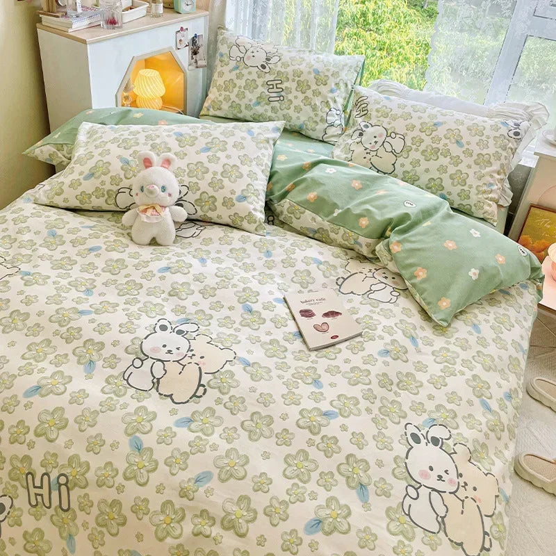Juego de cama DecorBites™ de algodón con estampado floral a doble cara - Juego de funda nórdica suave tamaño Queen