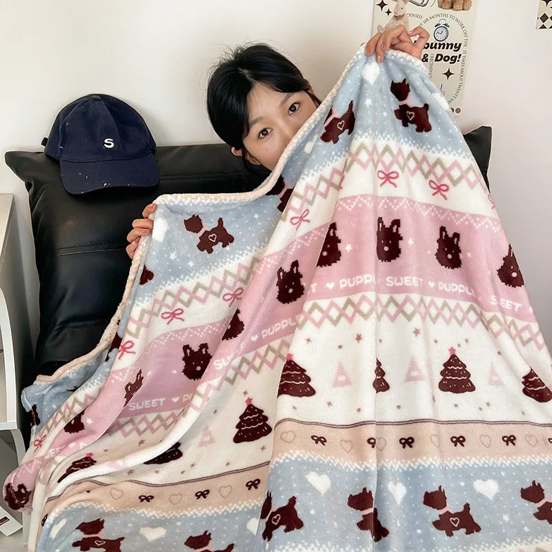 Manta estampada de terciopelo fino de doble cara DecorBites™ para adultos - Ropa de cama y decoración de sofá para primavera y otoño