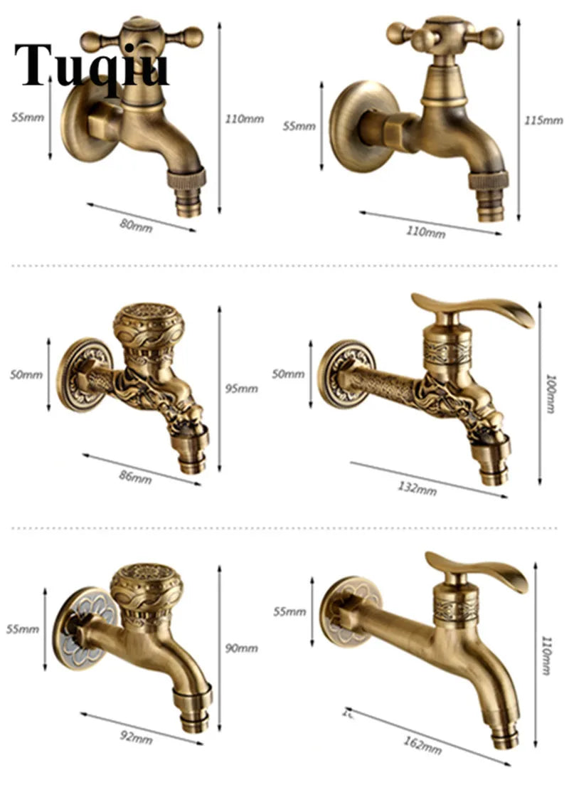 Grifos de jardín DecorBites™ de latón antiguo tallado con forma de dragón, monomando de agua fría para exteriores ★