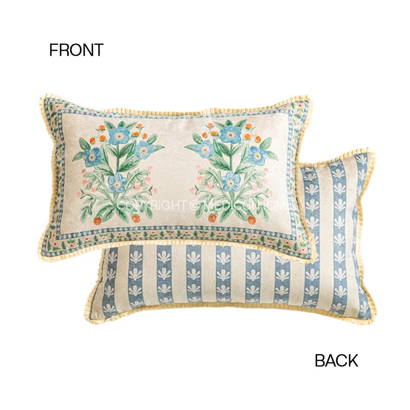 Funda de cojín lumbar DecorBites™ con estampado floral pastoral francés, 30 x 50 cm, textura de tela de lujo.