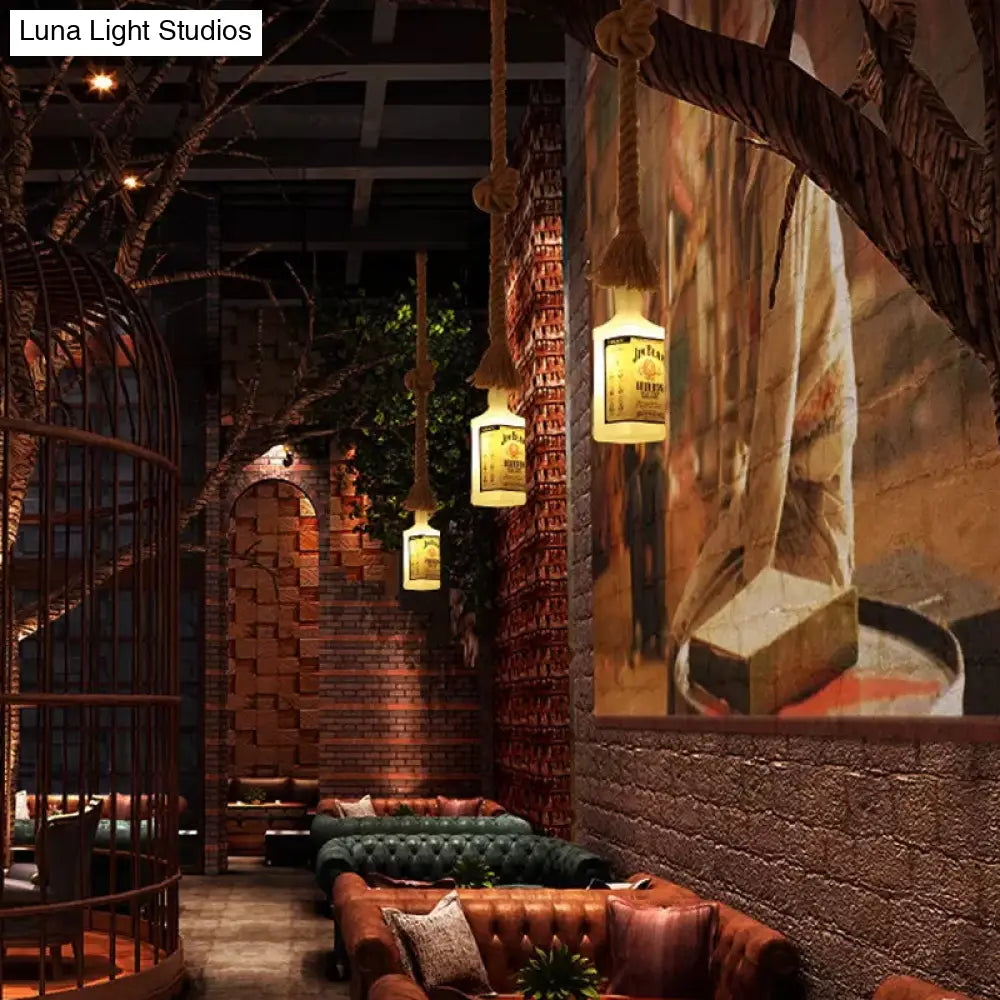 Lámpara de isla DecorBites™ de cristal blanco esmerilado - Estilo loft, diseño de botella de vino negra - Perfecta para restaurantes, iluminación colgante de techo