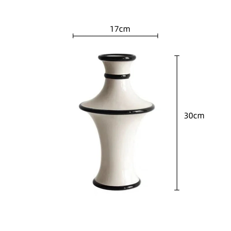 Este jarrón de mesa está libre de sustancias químicas nocivas, garantizando la seguridad de sus plantas y flores. Sus rayas geométricas blancas y negras le dan un toque contemporáneo a los diseños tradicionales, convirtiéndolo en un complemento versátil para cualquier estilo de decoración.