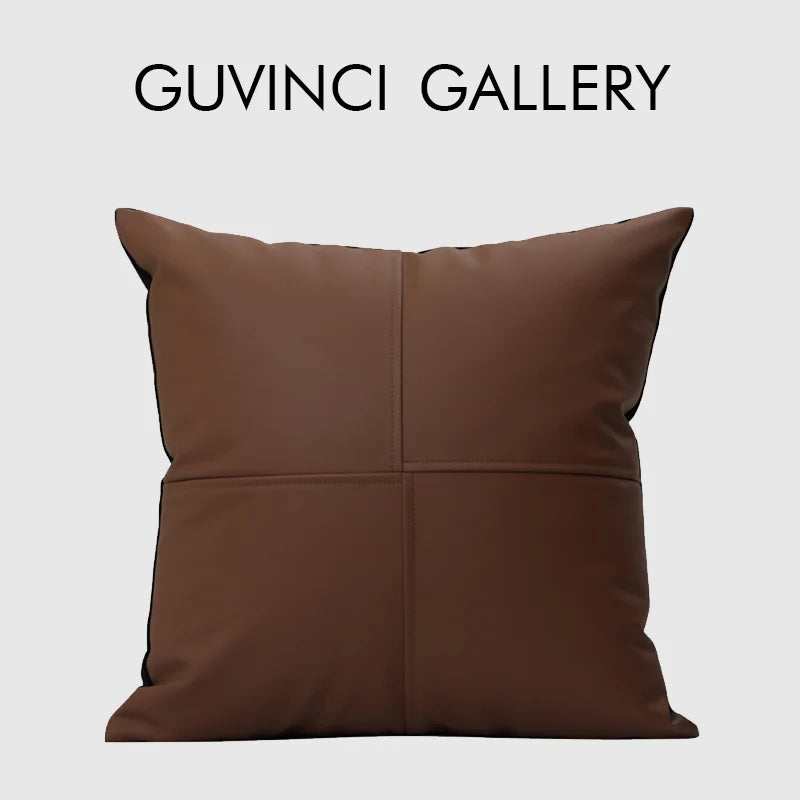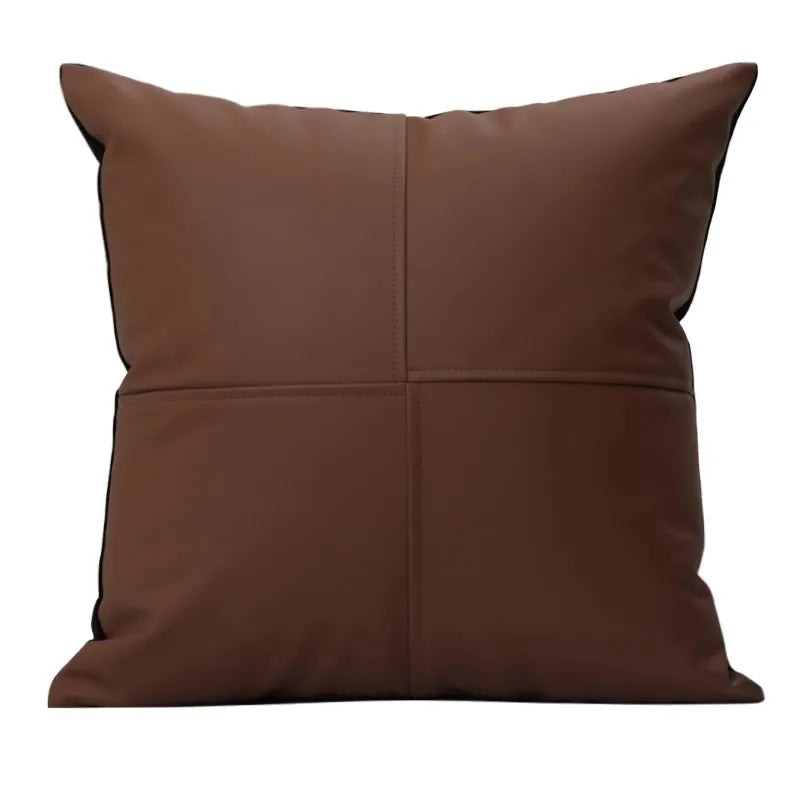 Funda de cojín DecorBites™ geométrica de piel marrón con diseño de empalme, 45x45 cm, funda de cojín cuadrada de lujo