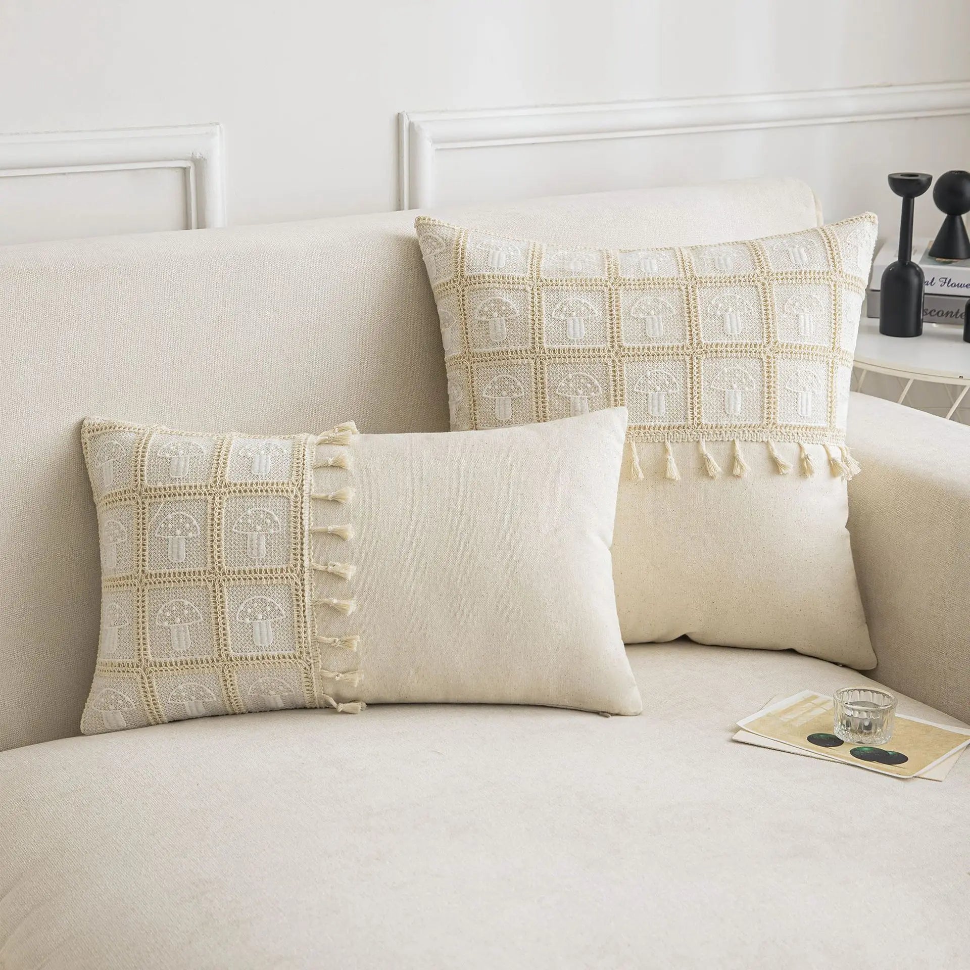 Con su elegante patrón geométrico y forma cuadrada, esta funda de cojín aporta un toque moderno a tu sala de estar, ya sea en tu sillón favorito o en el coche. El intrincado bordado y el estilo de sarga le dan un aspecto sofisticado que complementa cualquier decoración.