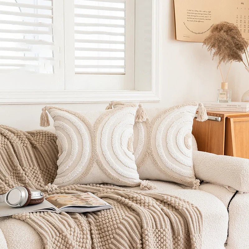 Transforma tu espacio vital con la funda de cojín decorativa Decorbites con bordado geométrico y ganchillo, y eleva tu decoración a nuevas cotas de estilo y sofisticación.