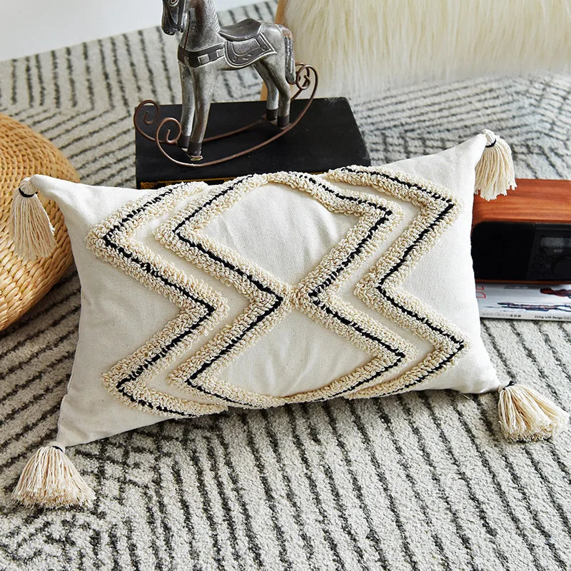 Transforma tu hogar con la belleza atemporal de la funda de cojín Decorbites con bordado geométrico y borla. Realza la decoración de tu casa con esta exquisita funda que combina a la perfección comodidad, estilo y durabilidad.