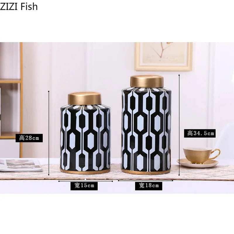 Jarrón de cerámica con rayas geométricas DecorBites™ para decoración del hogar, tanque de almacenamiento, mesa de sala