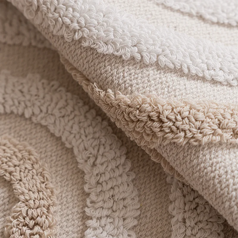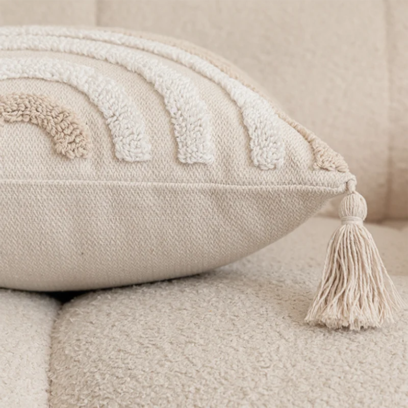 Su diseño extraíble y lavable facilita el mantenimiento, asegurando que la funda de tu cojín se mantenga fresca y limpia durante años. El patrón geométrico y el tejido con mechones añaden una textura única y un toque visual atractivo a tu decoración.