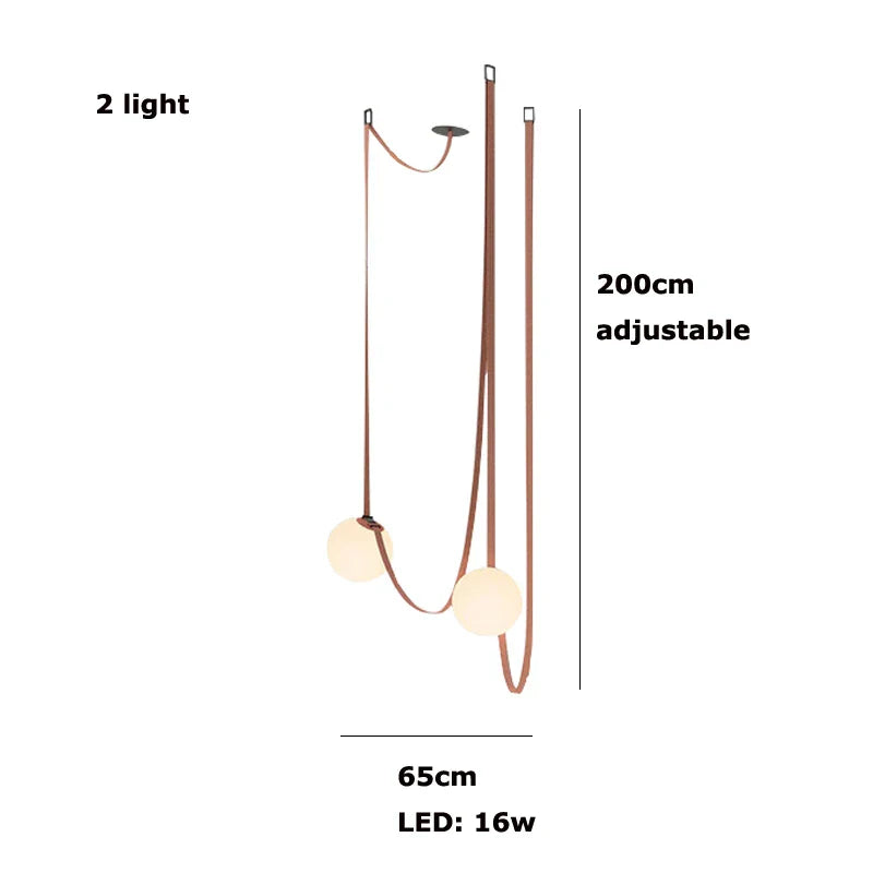 Elaborada con materiales de alta calidad, como una pantalla de cristal esmerilado y una correa larga de tela premium, esta lámpara colgante derrocha estilo y durabilidad. Su diseño único, con la pantalla orientada hacia arriba y hacia abajo, aporta un toque de elegancia a la decoración.