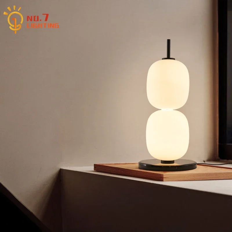 Lámpara de mesa DecorBites™ con forma de calabaza de cristal, base de mármol, iluminación LED moderna para interiores
