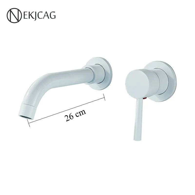 Este grifo de lavabo, al ser de instalación mural, no solo ahorra espacio, sino que también aporta un aspecto limpio y moderno a su baño. Su elegante diseño monomando, combinado con los colores dorado y cromo negro, realza la estética de la zona del lavabo.