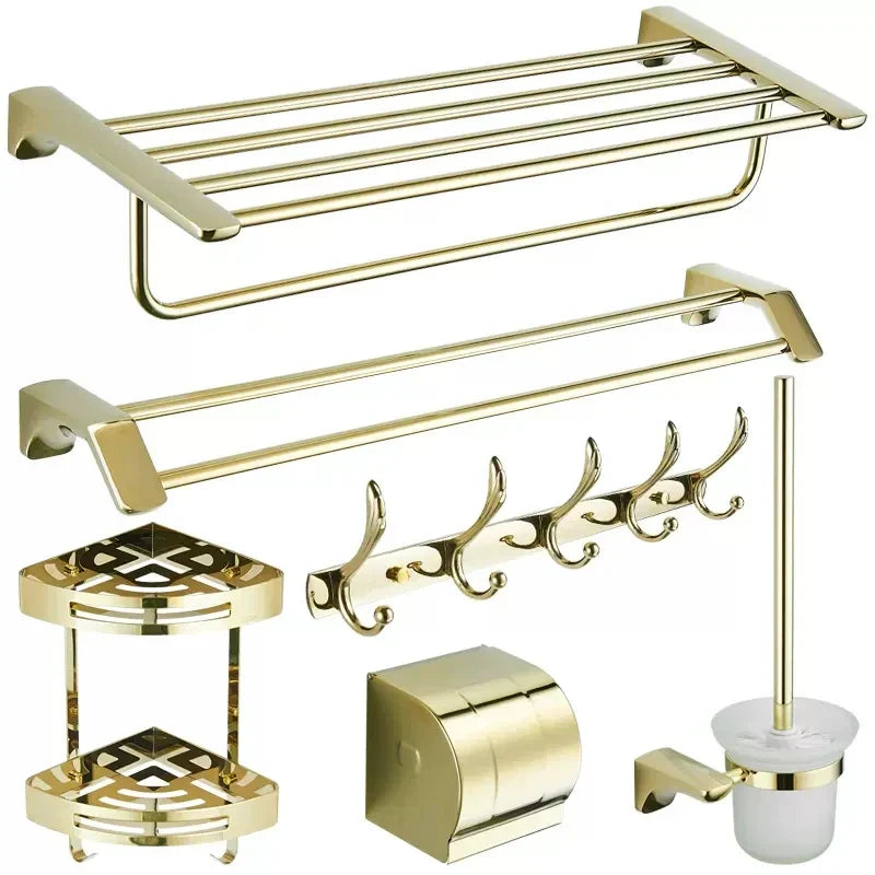 Juego de herrajes de baño DecorBites™ dorados: toallero, estante, portarrollos de papel, soporte para toallas, portaescobillas de inodoro