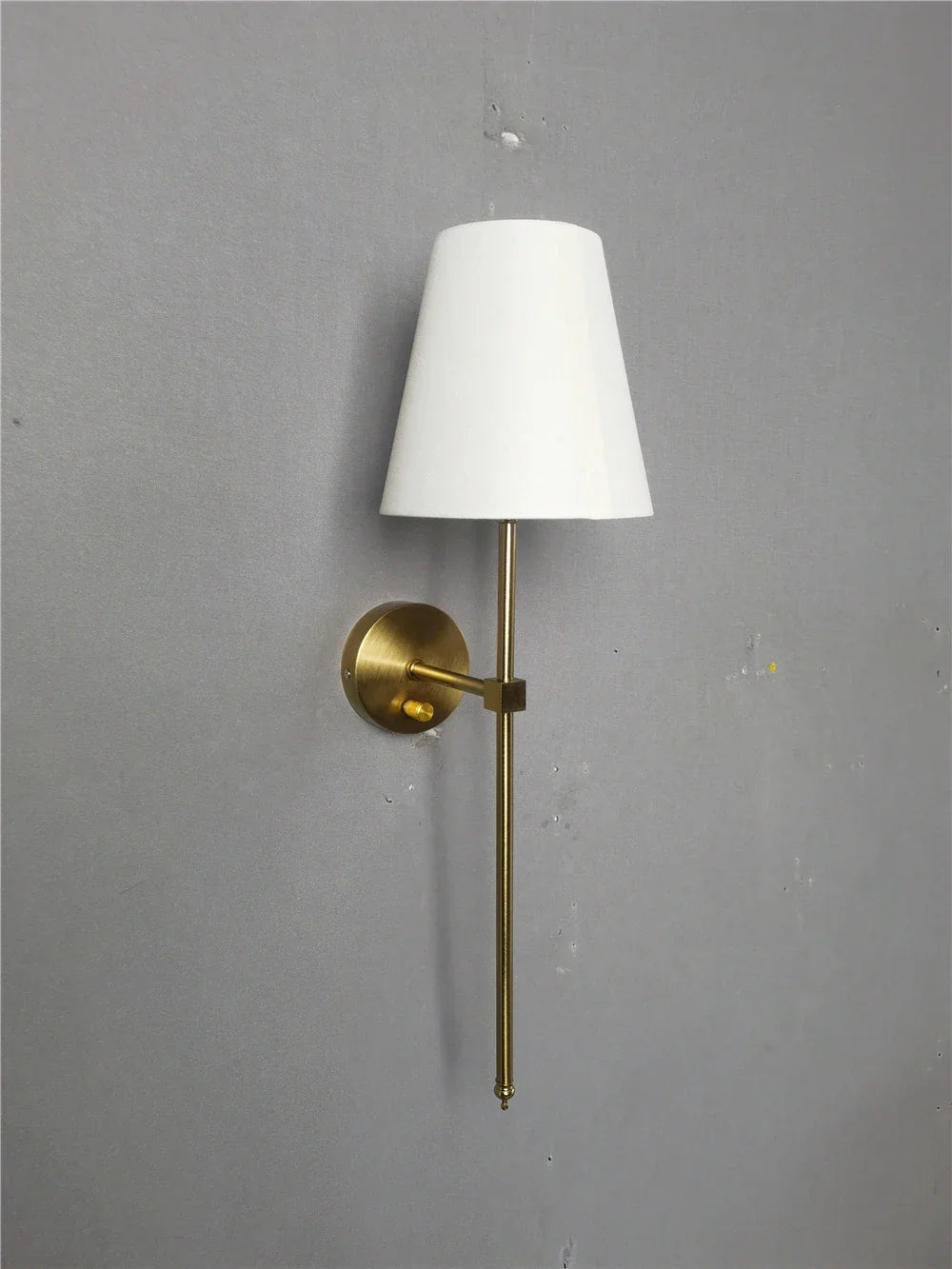 Aplique de pared DecorBites™ con pantalla de tela dorada para iluminación de dormitorio y sala de estar