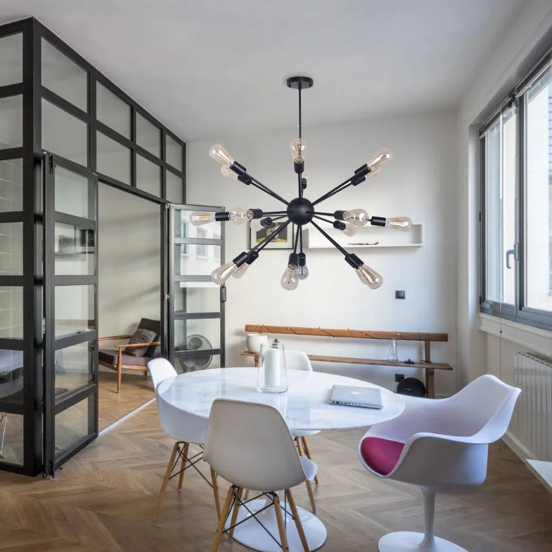 Con una sola bombilla LED, esta lámpara colgante proporciona una iluminación amplia que cubre un área generosa de 15 a 30 metros cuadrados, lo que la hace ideal para su sala de estar, estudio, dormitorio principal, otros dormitorios o incluso una habitación de hotel. Su estructura de aluminio chapado garantiza durabilidad, mientras que el acabado en hierro le añade un toque de encanto industrial.