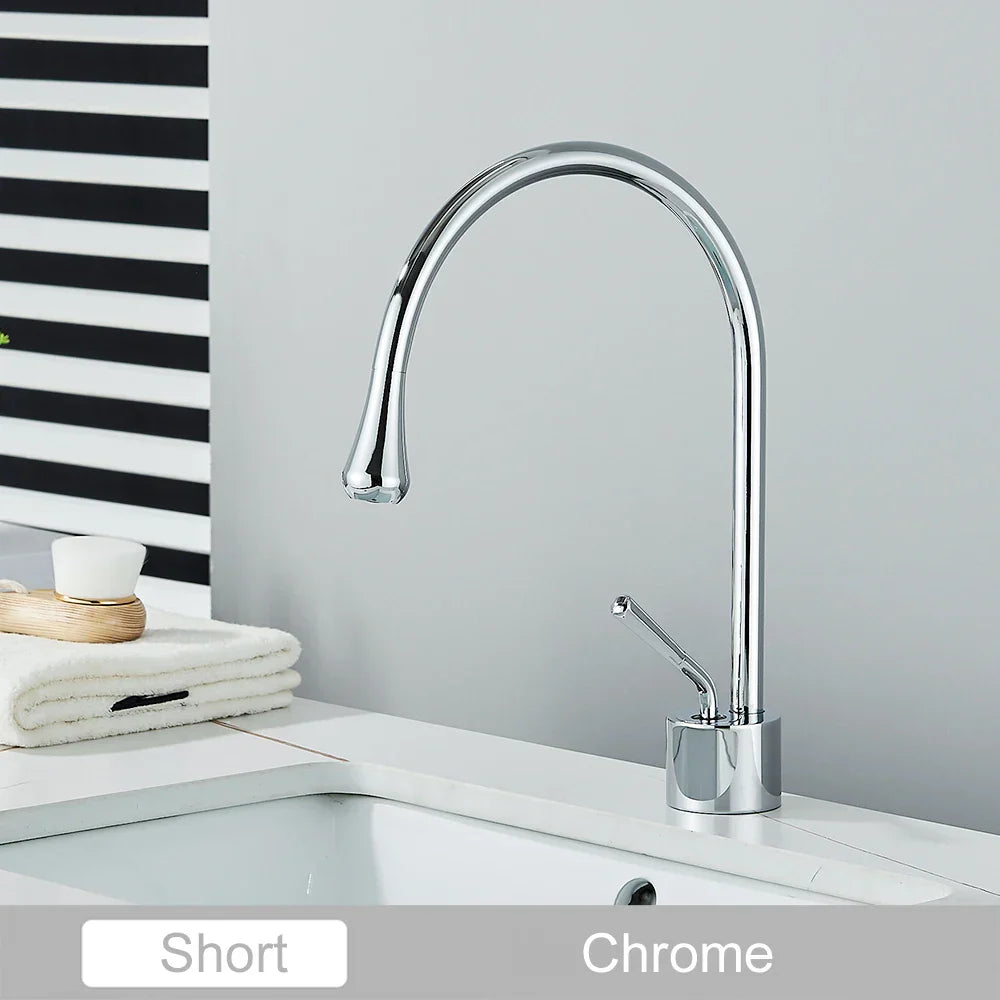 Grifo alto DecorBites™ Gold, mezclador giratorio de cascada de 360° para lavabo de baño