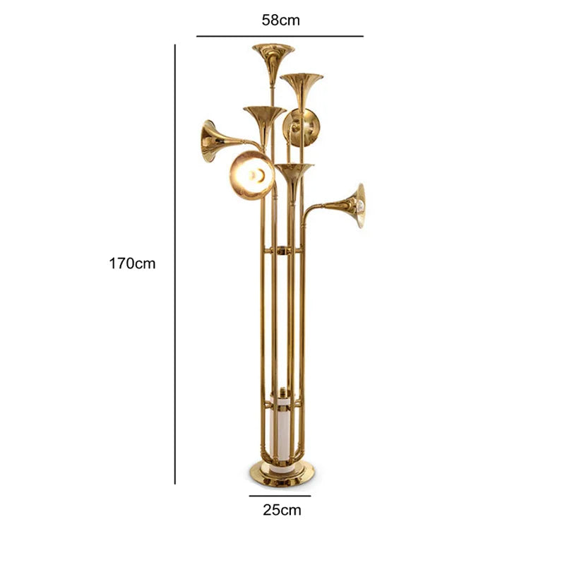Lámparas de pie colgantes DecorBites™ Gold Trumpet de múltiples cabezales: modernas y creativas lámparas de pie con forma de cuerno.