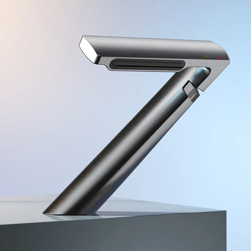 Grifo de lavabo DecorBites™ Gold Waterfall: Grifo mezclador gris, monomando para agua fría y caliente.