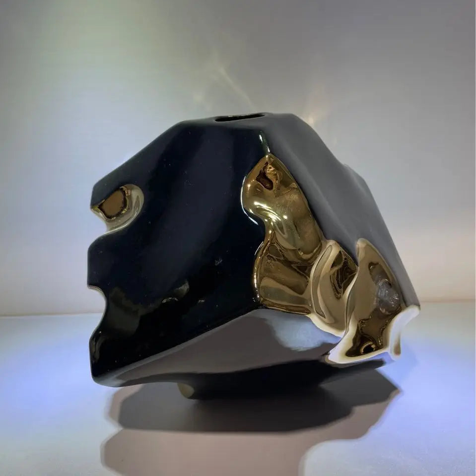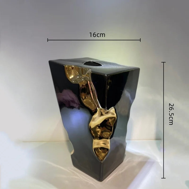 Jarrón de cerámica DecorBites™ Golden Notch con diseño geométrico cuadrado, accesorio de decoración para el hogar