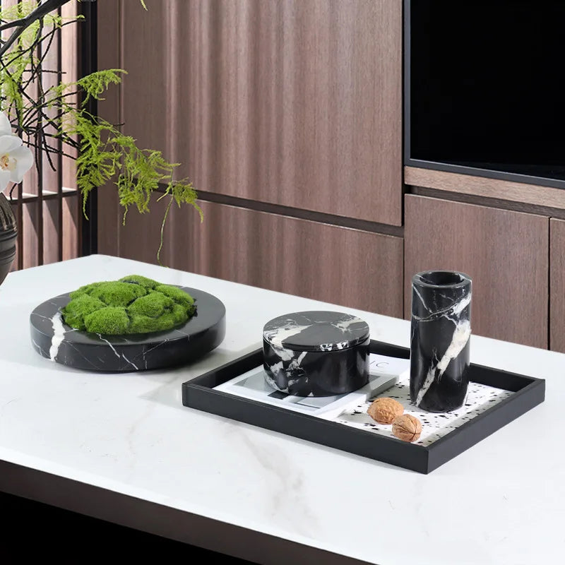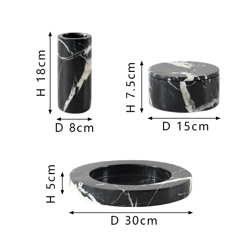 Elaborado en mármol natural con un impresionante tono Noir Grand Antique, este tarro de almacenamiento irradia sofisticación y estilo. Su fina artesanía europea garantiza un producto de alta calidad, duradero y visualmente atractivo.
