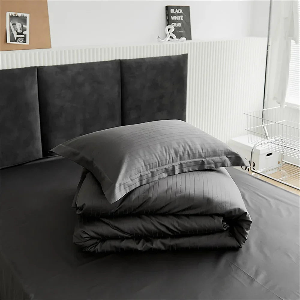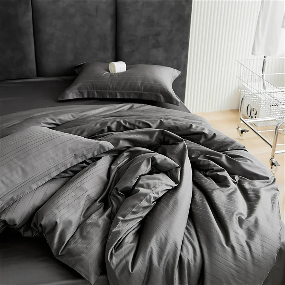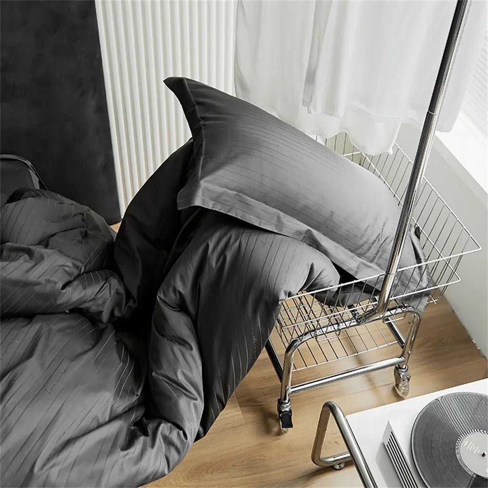 Juego de funda nórdica DecorBites™ con rayas grises, satén jacquard de algodón, tamaño Queen/King