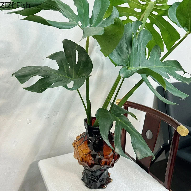 Jarrón de vidrio irregular DecorBites™: Decoración de escritorio, arreglo floral, maceta decorativa