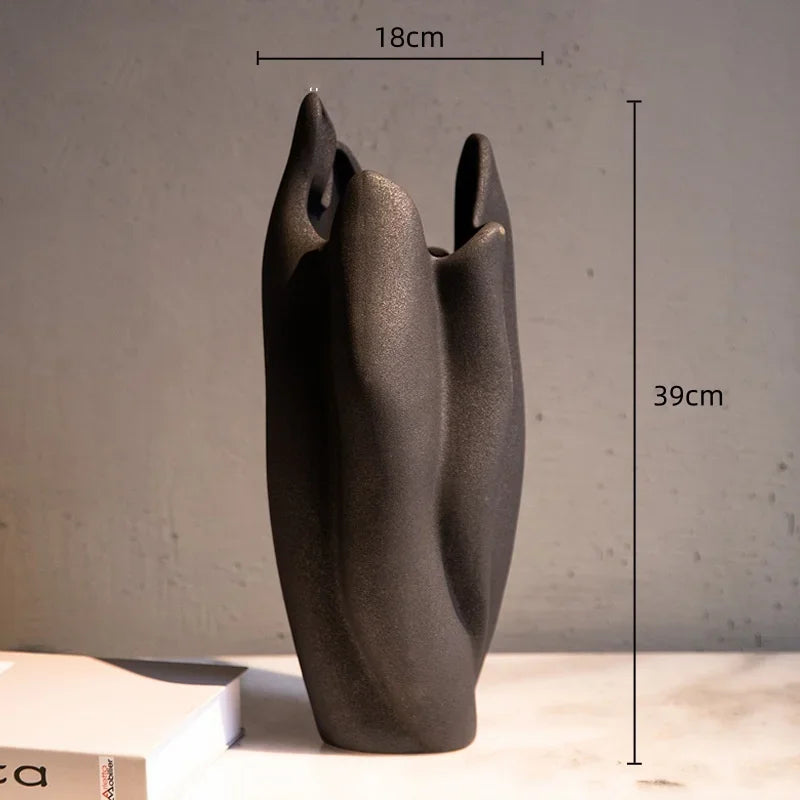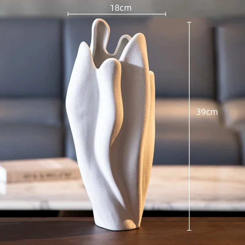 Jarrón de cerámica plisada irregular DecorBites™ para decoración del hogar y arreglos florales