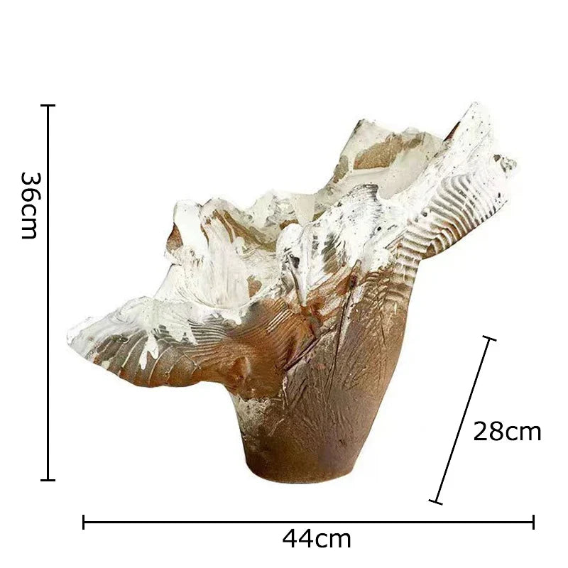 Elaborado con resina de alta calidad, este jarrón no solo es visualmente atractivo, sino también duradero y resistente. Su forma irregular le confiere un toque único, convirtiéndolo en una pieza que destaca en cualquier habitación. Ya sea sobre un escritorio, una estantería o una mesa, este jarrón sin duda captará la atención y dará pie a interesantes conversaciones.