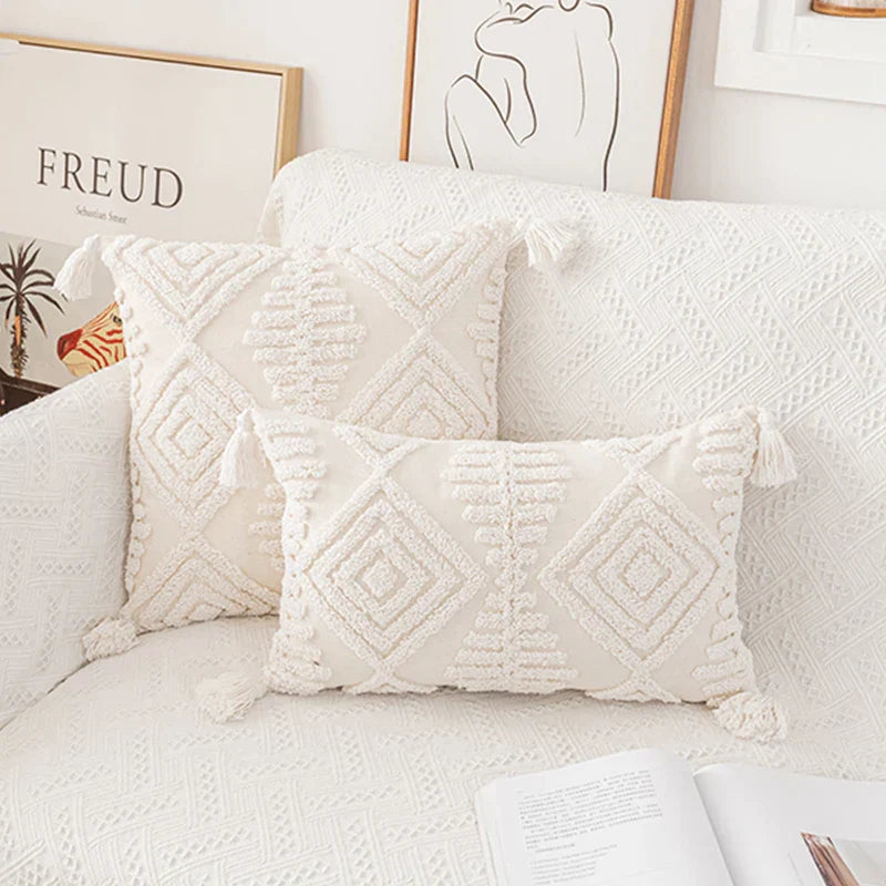 Funda de cojín DecorBites™ de algodón color marfil con diseño de bucle y mechones para decoración del hogar