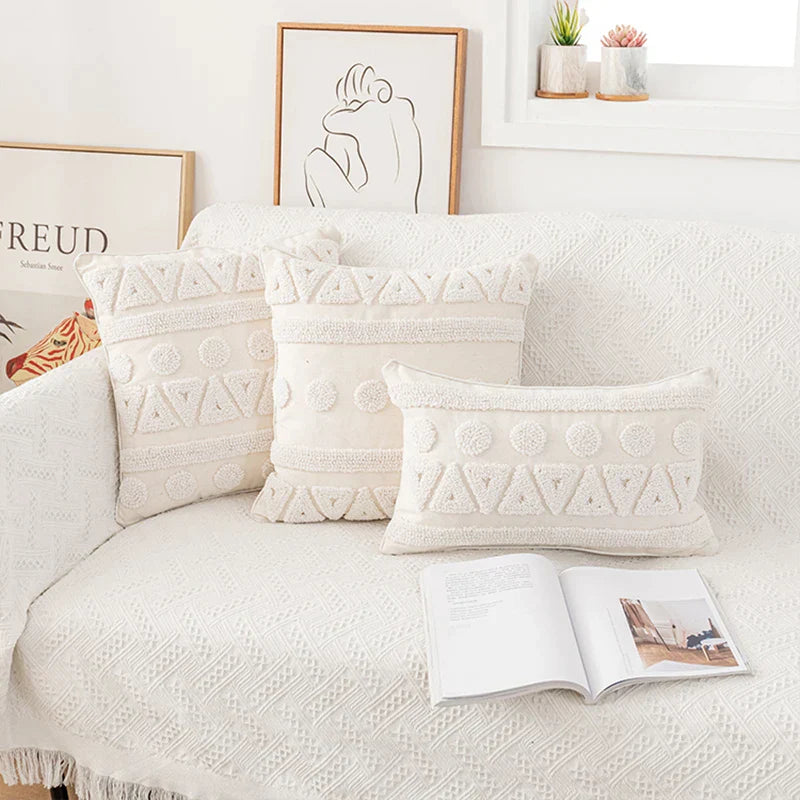 Disponible en dos tamaños, 45x45 cm y 30x50 cm, la funda de cojín cuenta con un práctico cierre de cremallera para facilitar su extracción y limpieza. Su técnica de tejido y acolchado garantiza durabilidad y un estilo que perdurará durante años.
