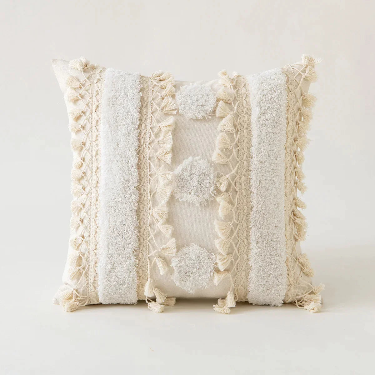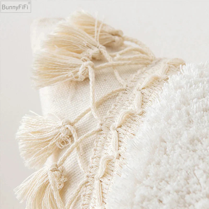 Funda de cojín DecorBites™ color marfil con borlas y pompones, 45x45cm/30x50cm. Decoración para el hogar, sofá, temporada.