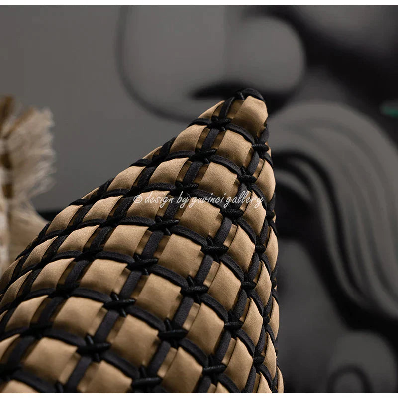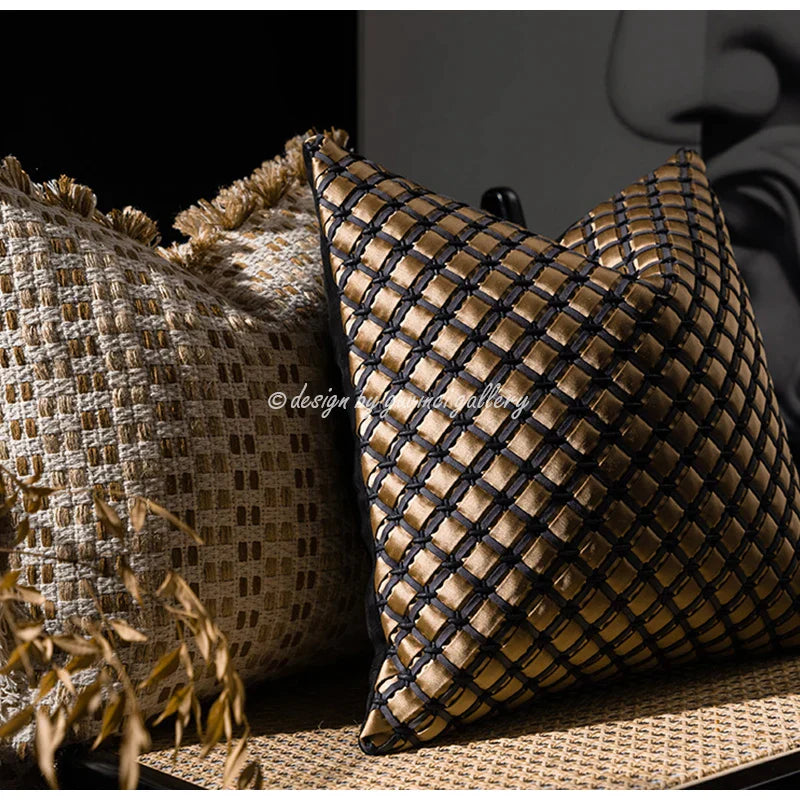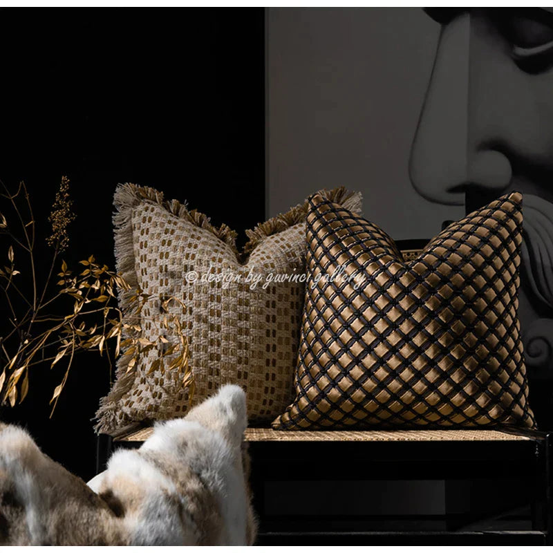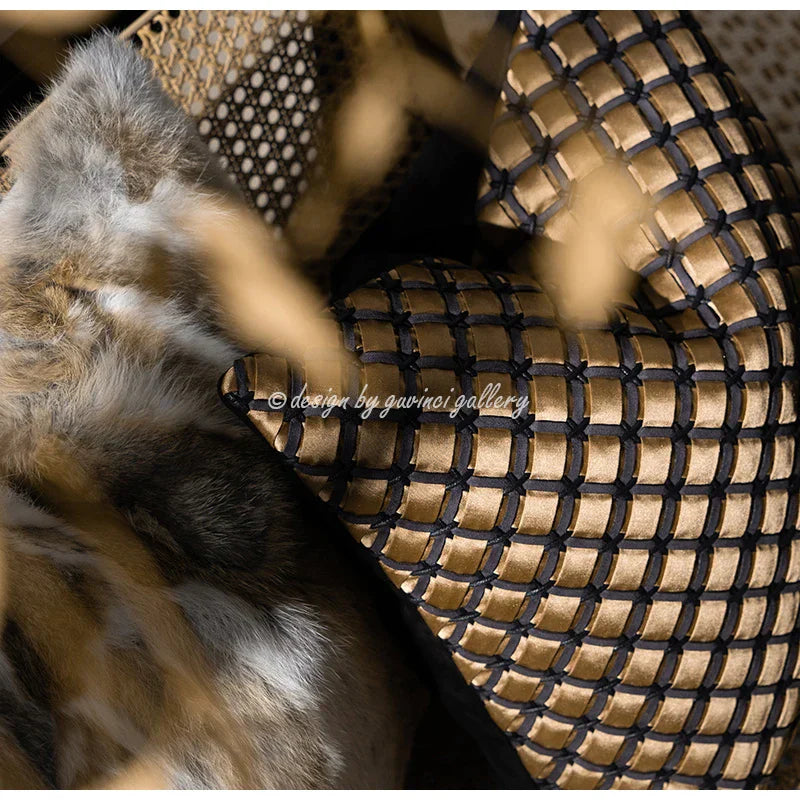 Fundas de cojín decorativas hechas a mano de piel de conejo color marfil y leonado de DecorBites™ - Decoración moderna de lujo