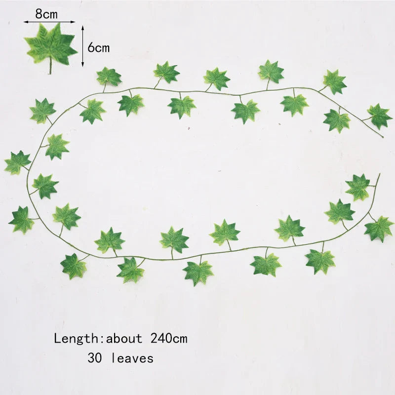 Si buscas añadir un toque natural a tu hogar o crear un telón de fondo pintoresco para eventos y celebraciones, esta guirnalda de hojas artificiales de hiedra verde es la opción perfecta. Realza tu decoración con la belleza de la naturaleza, sin el mantenimiento de las plantas reales.