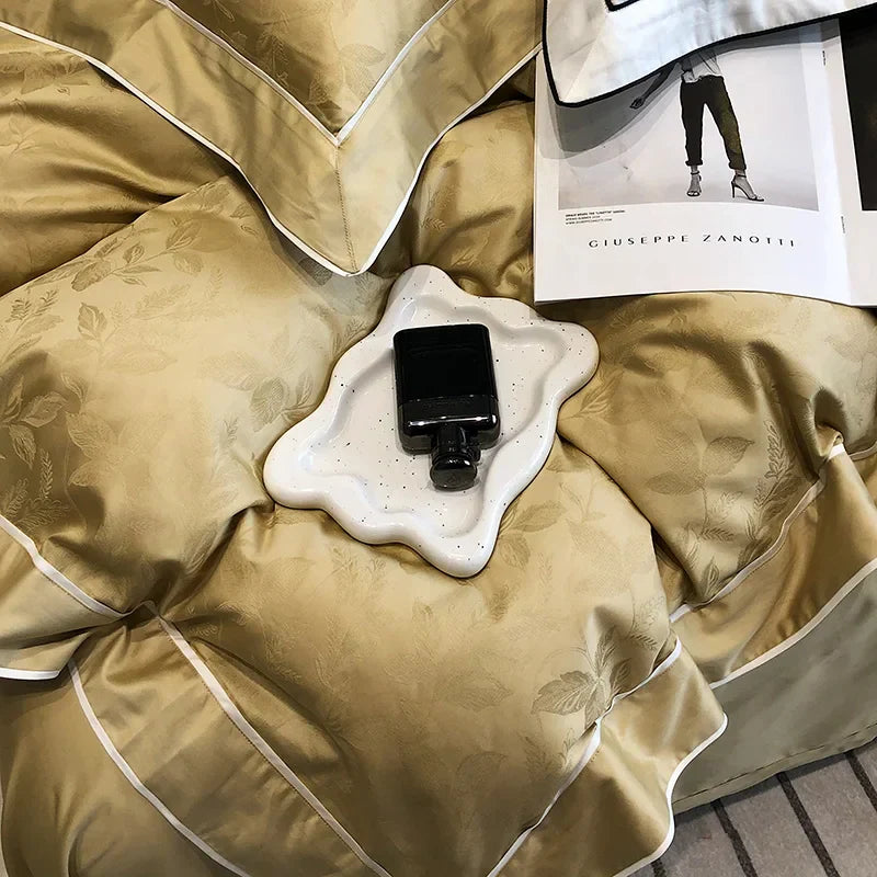 Deléitese con el lujo y el estilo de nuestro juego de cama Decorbites de satén jacquard y patchwork de algodón egipcio de 4 piezas. Este exquisito juego de cama está diseñado para quienes aprecian las cosas buenas de la vida.