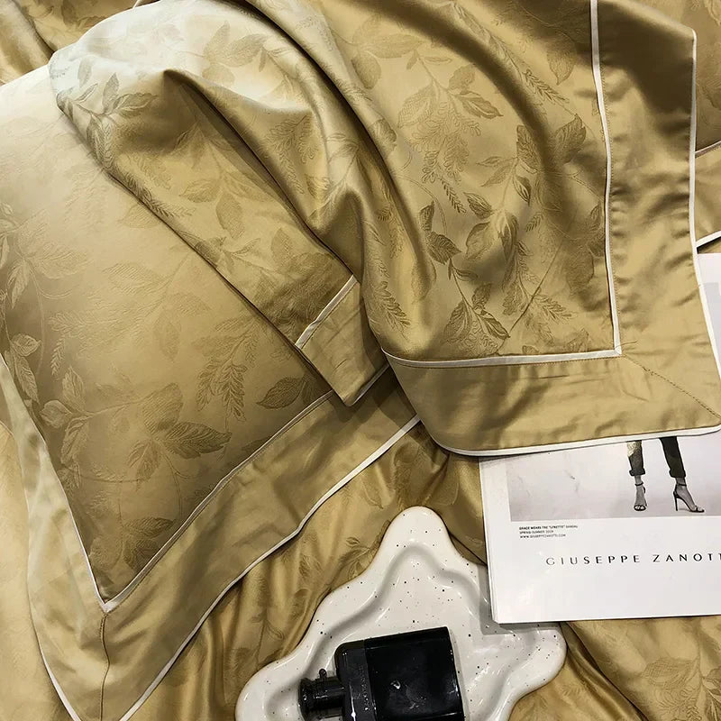 Confeccionado con esmero, este juego de cama está hecho de algodón 100% de alta calidad con una densidad de 1000 hilos. La técnica empleada es el bordado, que aporta un toque de elegancia al diseño. El tejido presenta un precioso estampado jacquard, ideal para quienes buscan un toque de sofisticación en su dormitorio.