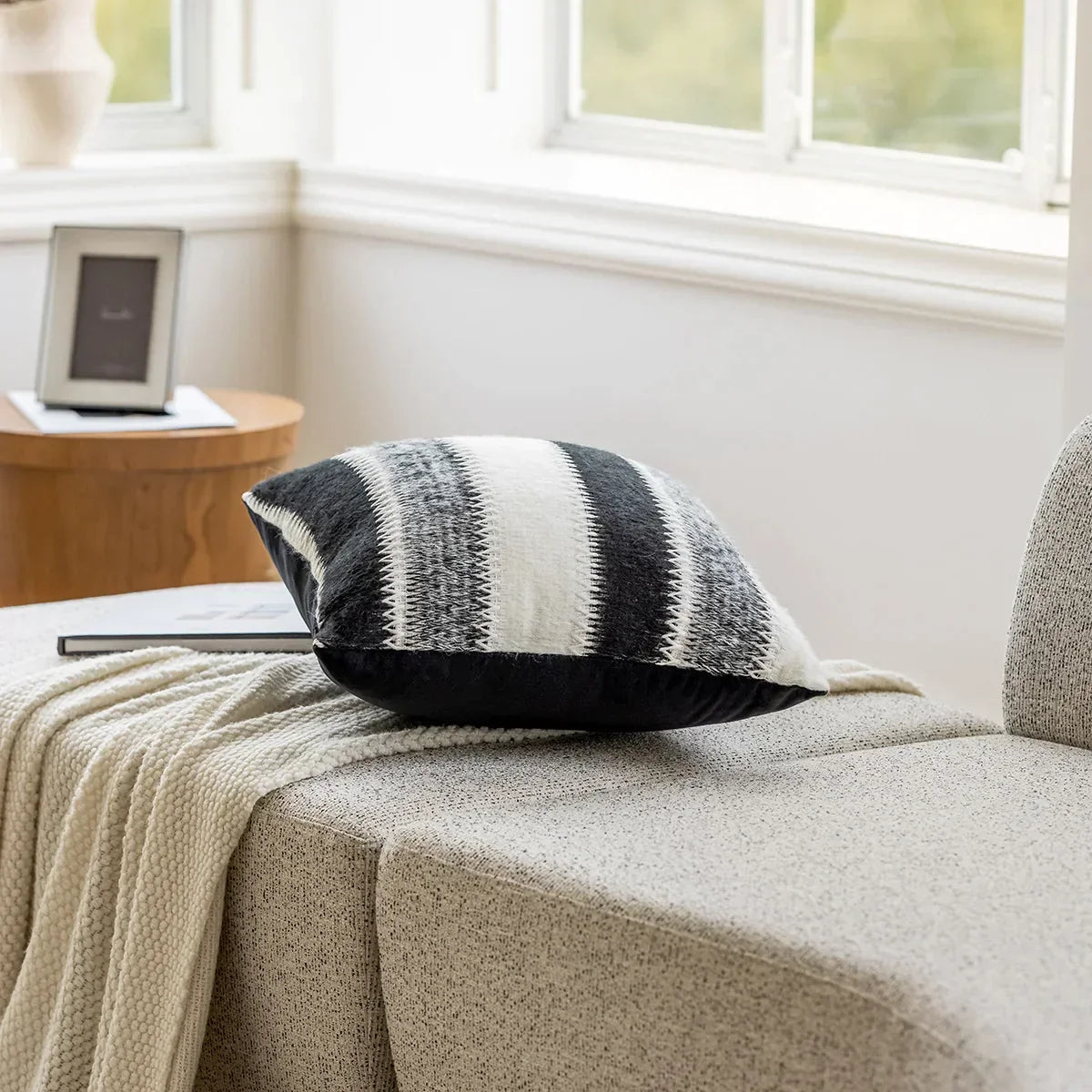 Funda de cojín de punto DecorBites™ en negro, gris y blanco, estilo nórdico sencillo y lujoso.