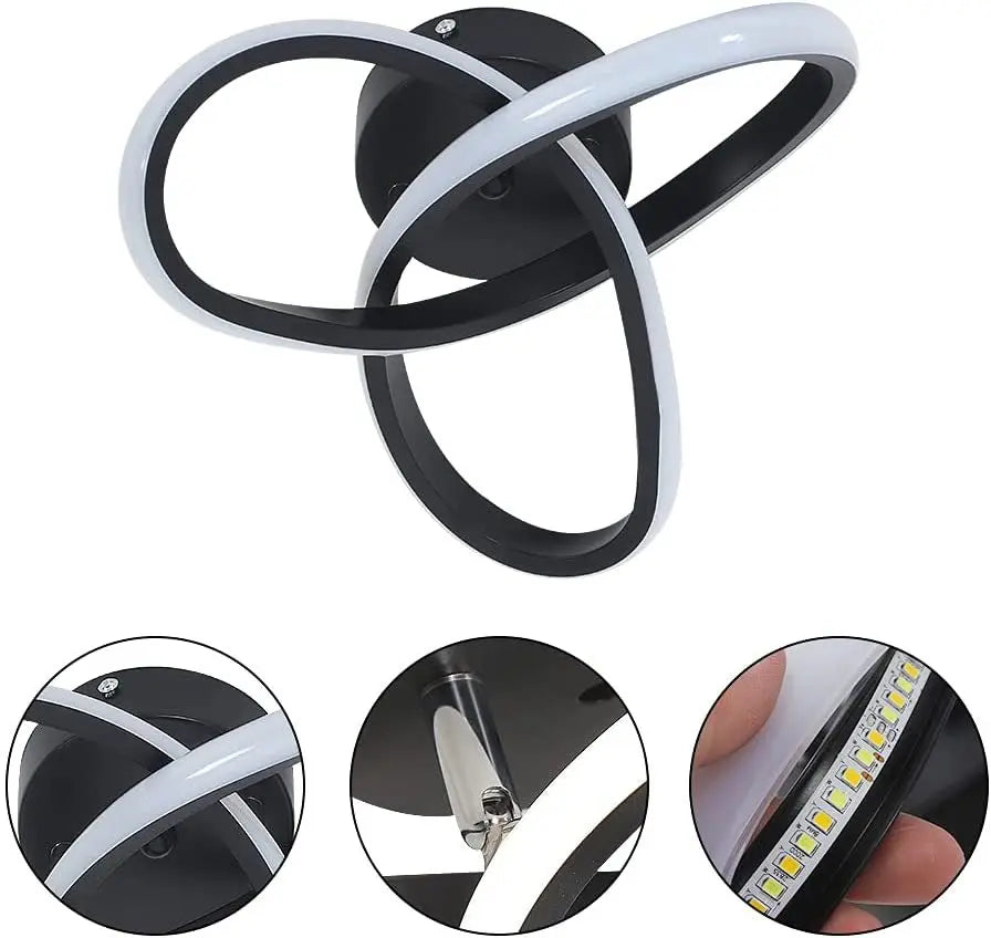 Elaborada con materiales de alta calidad como aluminio y hierro, la lámpara de techo LED irradia lujo y elegancia. Su diseño creativo presenta un acabado chapado en negro, blanco u dorado, permitiéndole elegir el color perfecto para complementar su decoración.