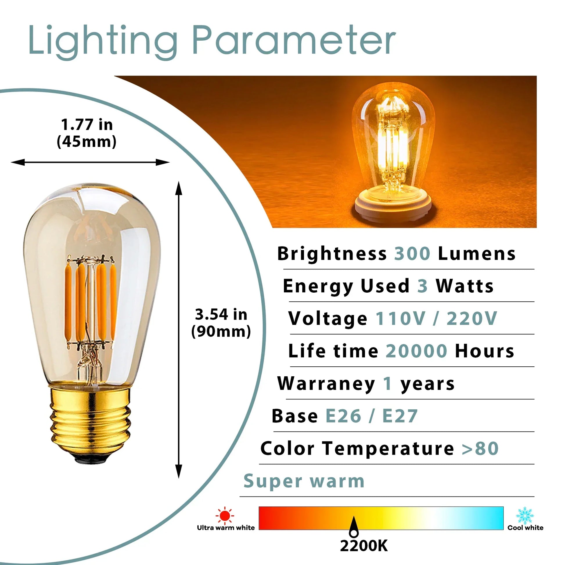 Bombilla LED de filamento DecorBites™ 3W ST45 Dorada Regulable E26 E27 2200K Decoración para interiores