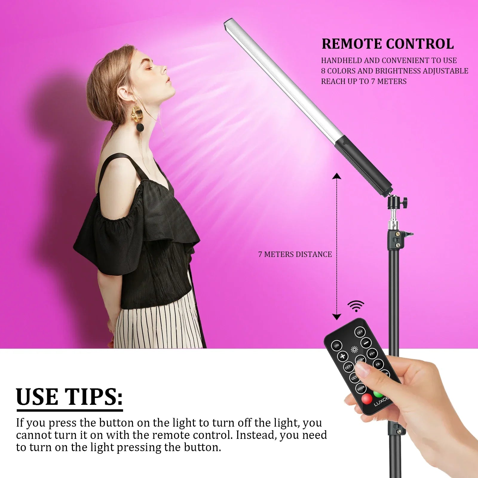 Ilumina tu espacio con la varita LED RGB y experimenta una iluminación sin precedentes. Mejora la creación de contenido con colores vibrantes y un ajuste de brillo superior, todo en un diseño elegante y práctico.