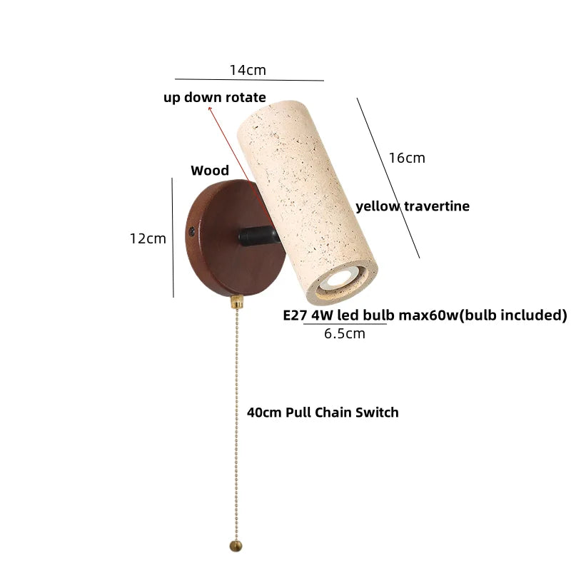 Aplique de pared LED DecorBites™ de madera de travertino amarillo, estilo nórdico moderno, con función de rotación.