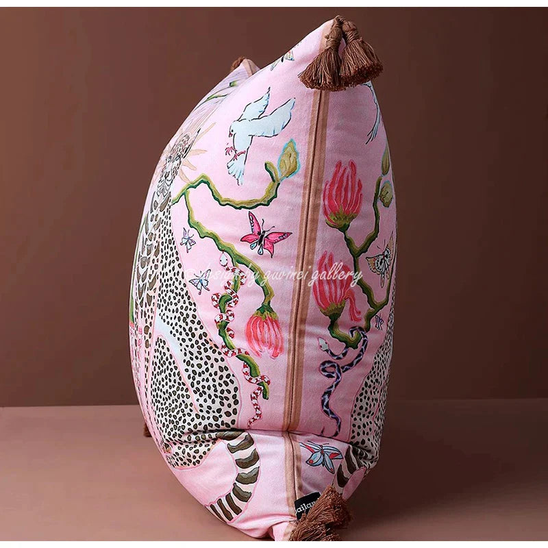 Funda de almohada DecorBites™ Luxe Cheetah Halo: Funda de cojín decorativa con borlas estilo GG