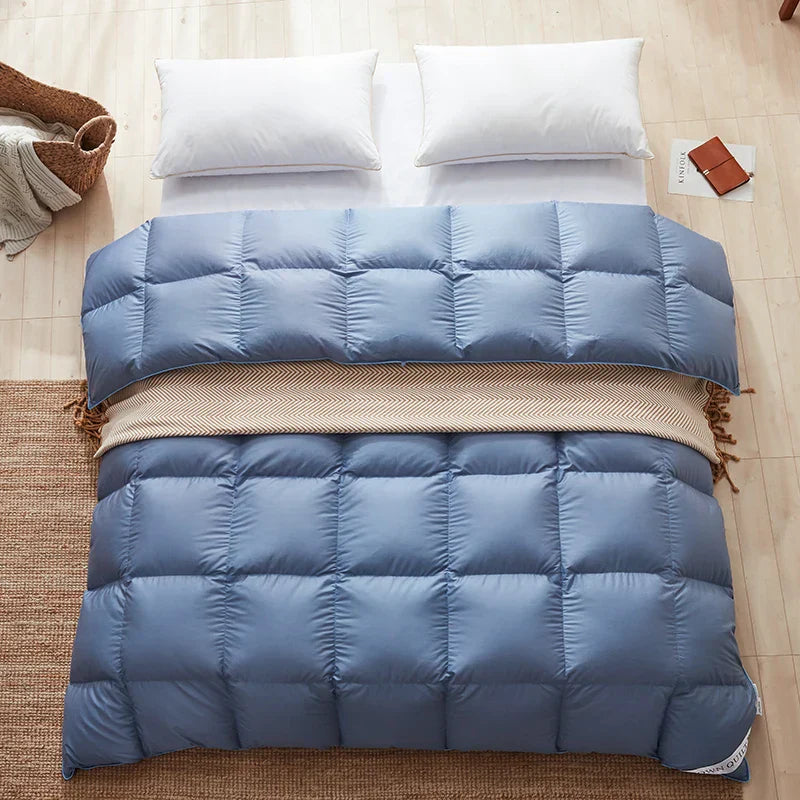 Confeccionado con algodón 100% y relleno de plumón de ganso de primera calidad, nuestro edredón es perfecto para las cuatro estaciones. La tecnología de tejido diagonal y el diseño acolchado garantizan la máxima suavidad y calidez, mientras que las técnicas de costura aseguran durabilidad y una calidad excepcional.