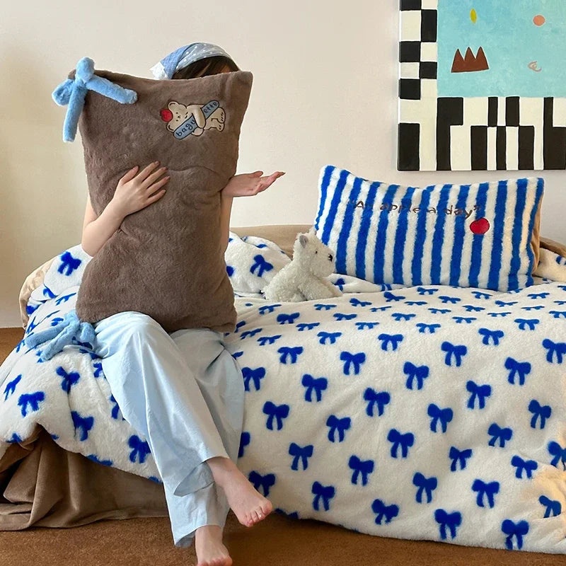 Juego de edredón de terciopelo bordado de lujo DecorBites™ para una cama acogedora en invierno